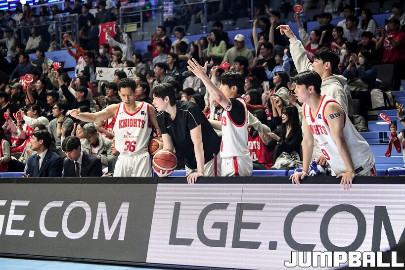 SK로서는 유리한 점 하나를 얻은 채 치른 경기다. 소노의 에이스 가드 이정현이 허벅지 타박으로 결장한 것. 평균 18.5점을 쏟아내는 선수가 빠진 것은, SK에게는 호재였다.