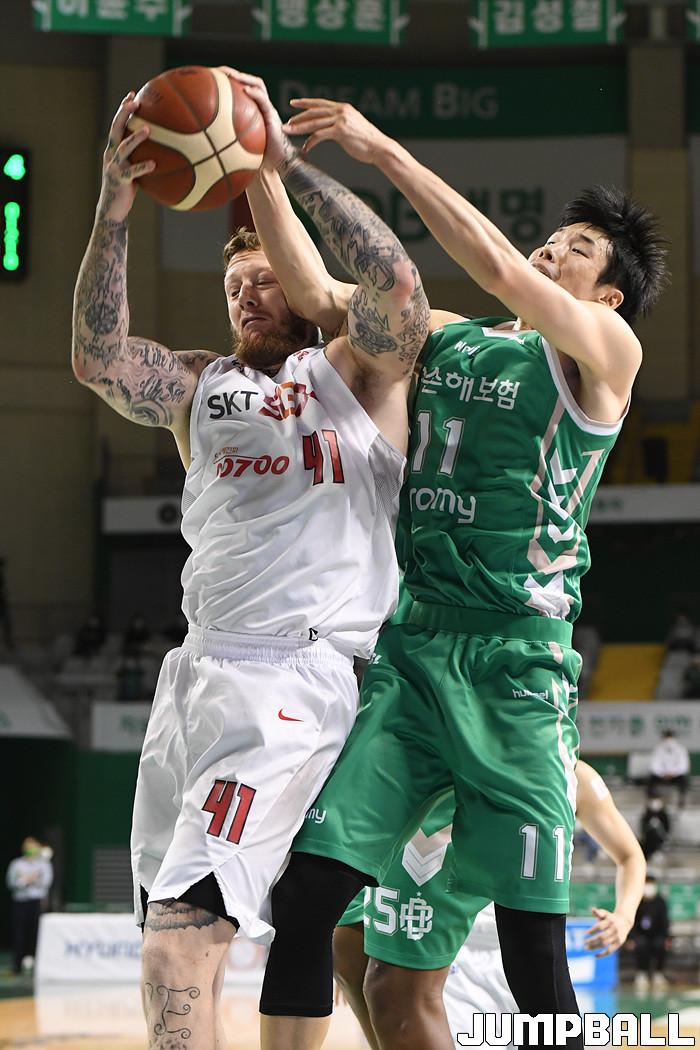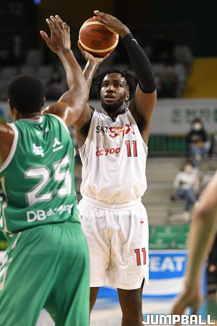 [점프볼=원주/박상혁 기자] 18일 원주종합체육관에서 열린 2020-2021 현대모비스 프로농구 원주 DB와 서울 SK의 경기, SK가 DB에 78-72로 승리했다. SK와 DB 경기 화보