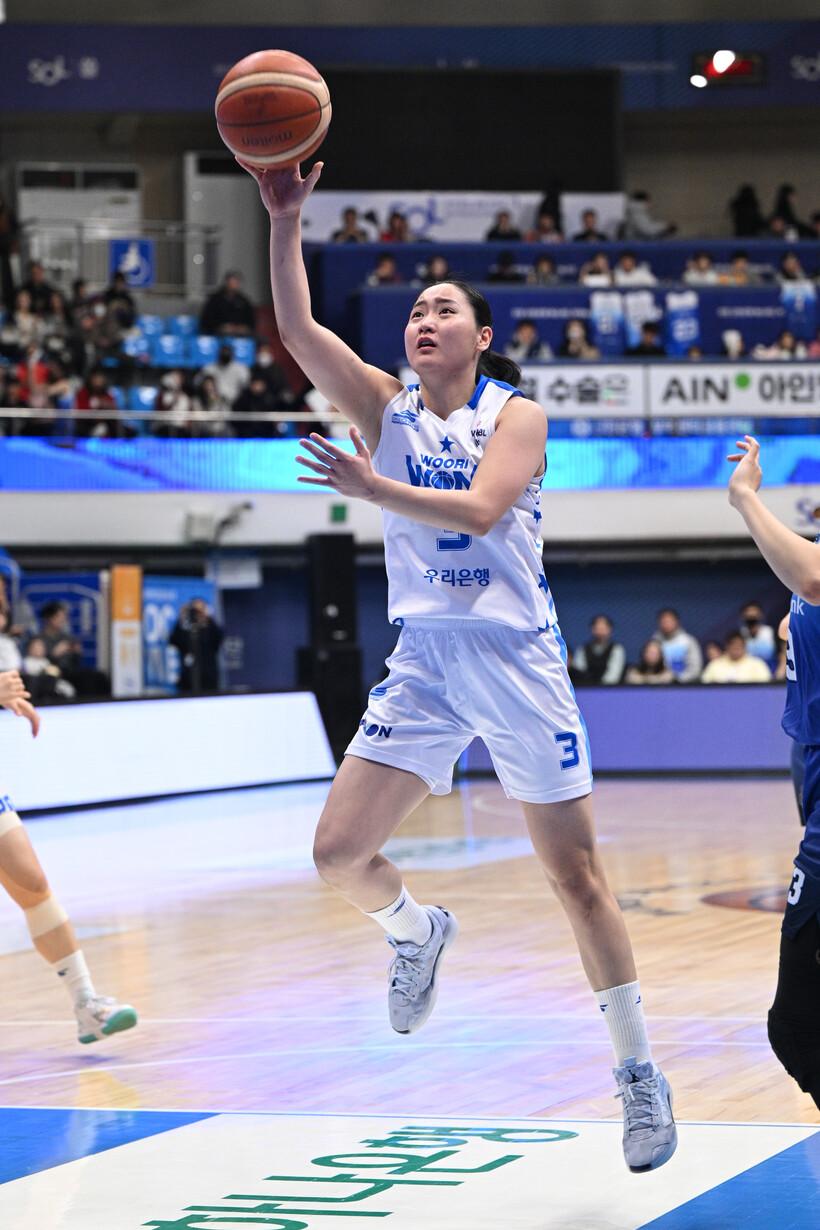 하나은행 2024~2025 여자프로농구 정규리그도 아산 우리은행 천하였다. 지난 시즌 우승의 주역들이 대거 팀을 떠나 전력이 약화됐지만 위성우 감독의 지도력과 에이스 김단비를 앞세워 또 한번 정규리그 1위에 올랐다. 여기에 빼놓을 수 없는 이들이 있다. 심성영, 한엄지, 스나가와 나츠키, 미야사카 모모나 등이 조력자 역할을 톡톡히 해냈다.