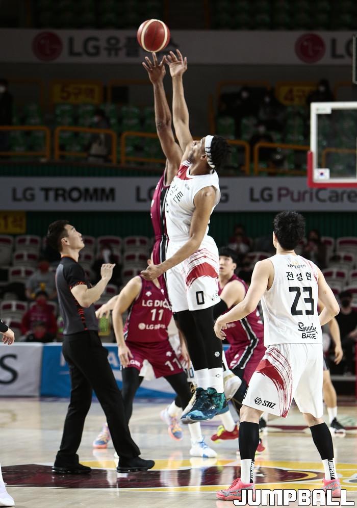 [점프볼=정을호 기자] 18 창원실내체육관에서 열린 2020-2021 현대모비스 프로농구 창원 LG 안양 KGC 경기, 안양 KGC 창원 LG 105-72 승리하였다. 창원 LG 안양 KGC 경기화보