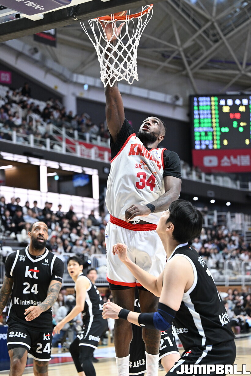 2연패 위기에서 벗어난 6위 KT는 7위 고양 소노와의 승차를 1경기로 벌리는 한편, 5위 부산 KCC와의 승차는 0.5경기로 줄였다. SK전 9연패 사슬도 끊었다. KT가 SK를 꺾은 건 지난 2024년 10월 25일 이후 497일 만이었다.