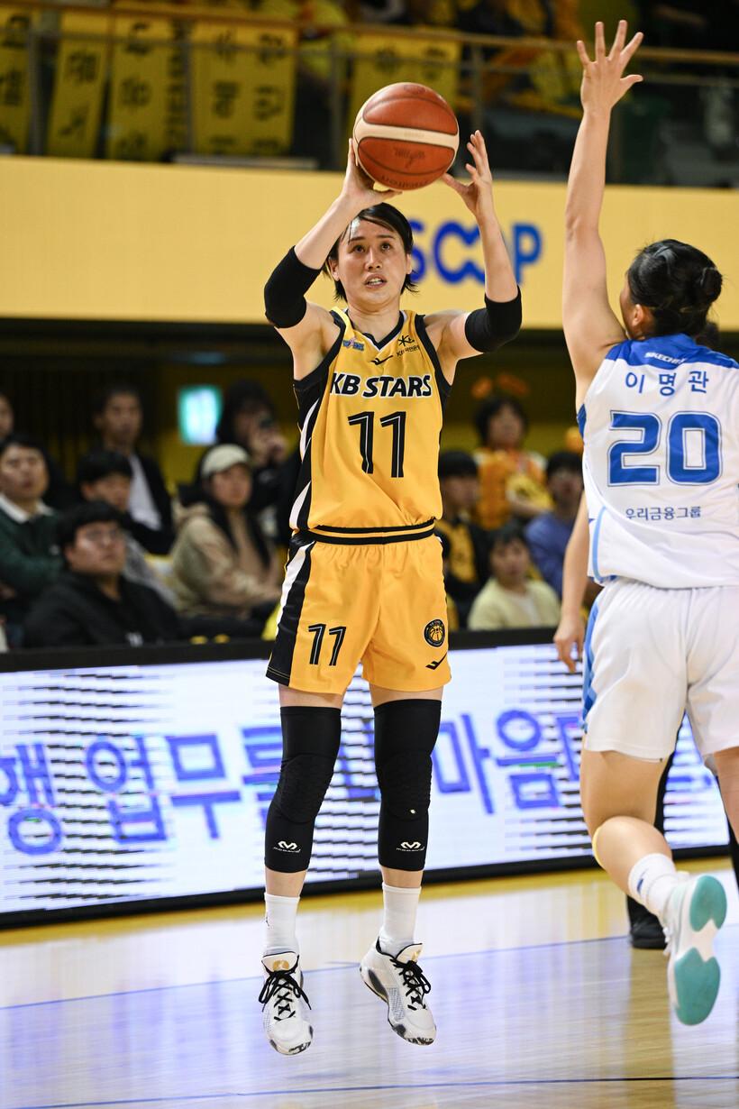 4쿼터에도 동점, 역전을 거듭하는 접전을 이어가던 KB스타즈가 승기를 잡은 것은 4쿼터 막판이었다. 벤치 테크니컬파울과 김민정의 부상으로 위기를 맞은 것도 잠시, 나가타와 허예은이 번갈아 돌파를 성공하며 전세를 뒤집은 것. 이어 경기 종료 1분여 전에는 나가타가 중거리슛을 추가, 격차를 5점까지 벌렸다.