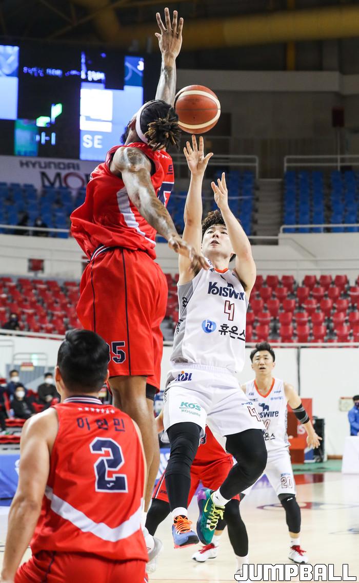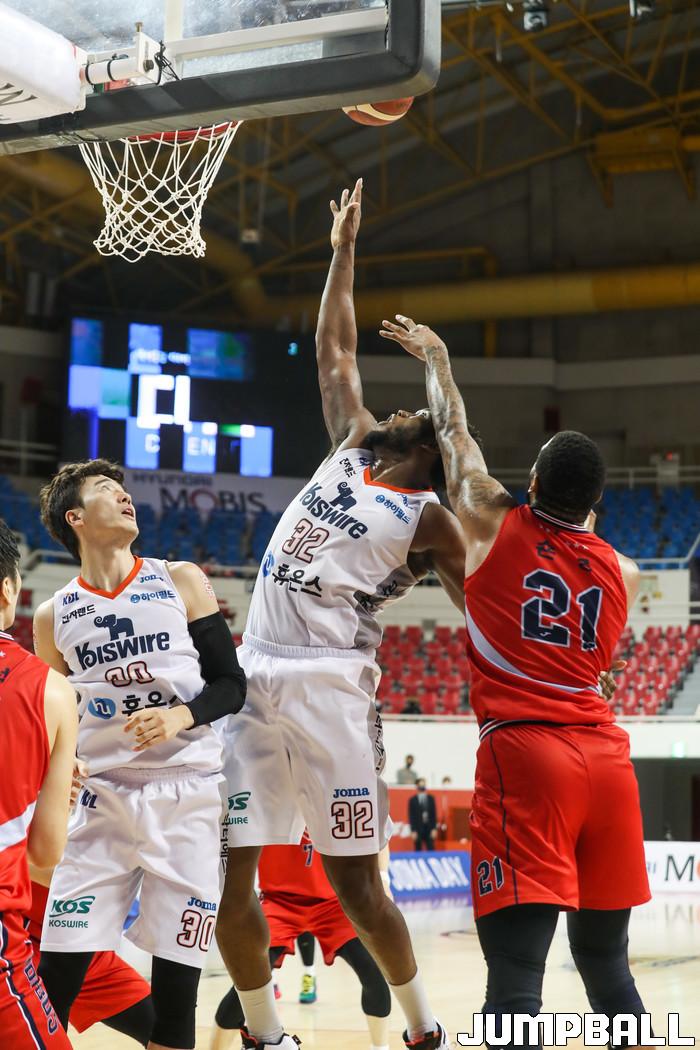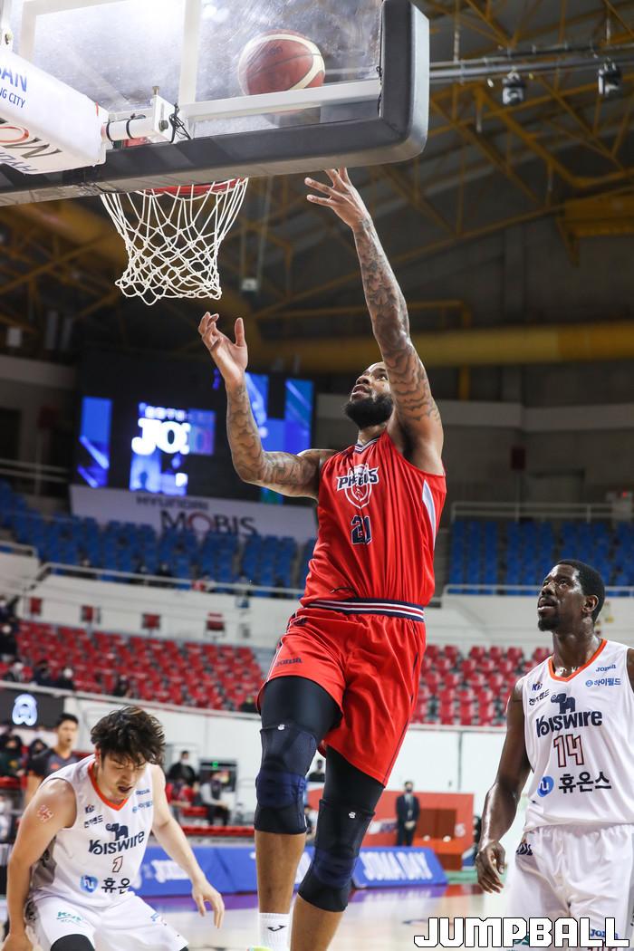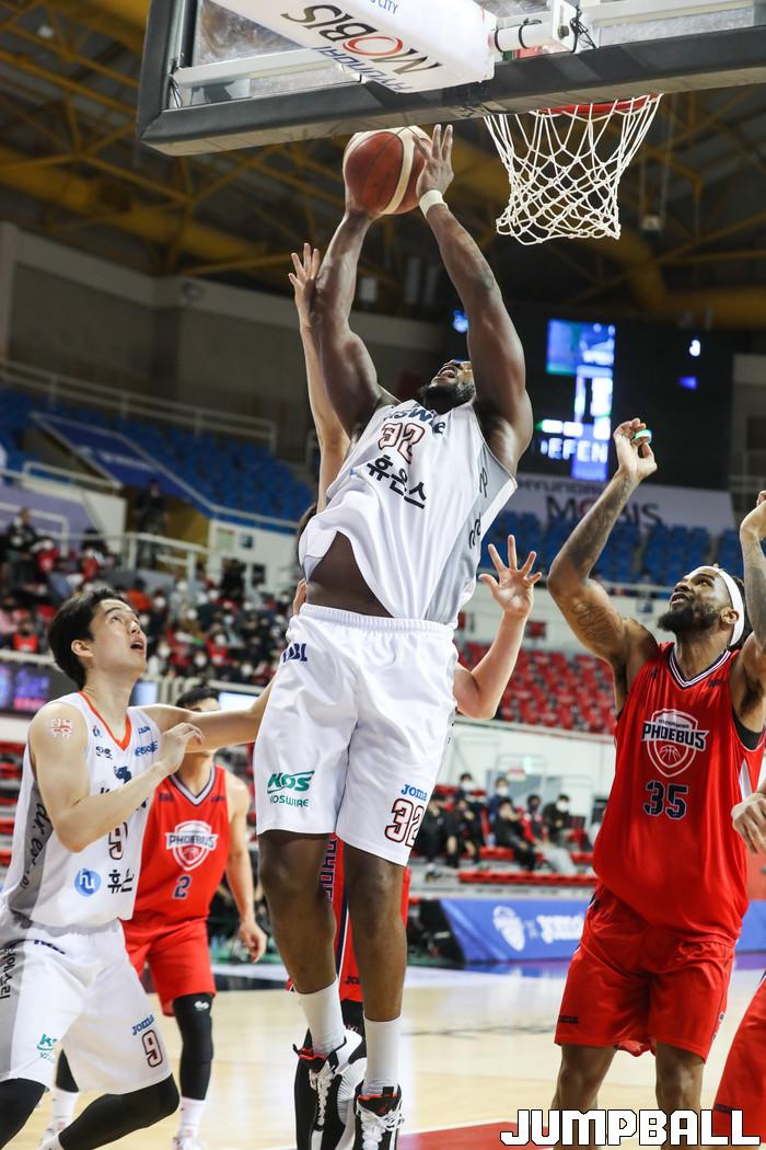 [점프볼=윤민호 기자] 울산 현대모비스는 19일 울산동천체육관에서 열린 2020~2021 현대모비스 프로농구 인천 전자랜드와 홈 경기에서 79-64로 이겼다. 전반 한 때 12점 차이로 뒤졌던 현대모비스는 이날 역전승을 거둬 전자랜드와 맞대결 4연승과 함께 홈 2연승을 맛봤다. 8승 6패를 기록한 현대모비스는 단독 4위 자리를 지켰다.