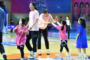 [점프볼=아산/유용우 기자] 06일 아산 이순신체육관에서 열린 2023-2024 WKBL 올스타 페스티벌 ‘W-페스티벌’, WKBL 스타들이 아이들과 함께 명랑운동회를 진행하고 있다.