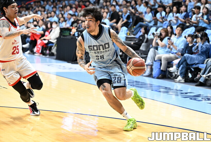 소노는 2쿼터에도 SK의 수비 에너지에 밀리며 10점에 그쳤다. 답답한 공격 흐름에도 소노는 흔들리지 않고 수비에 집중하며 실점을 12점으로 최소화했다. 30-30으로 팽팽하던 순간, 이정현이 유로 스텝을 통해 득점을 만들며 32-30으로 소노가 리드를 유지했다.