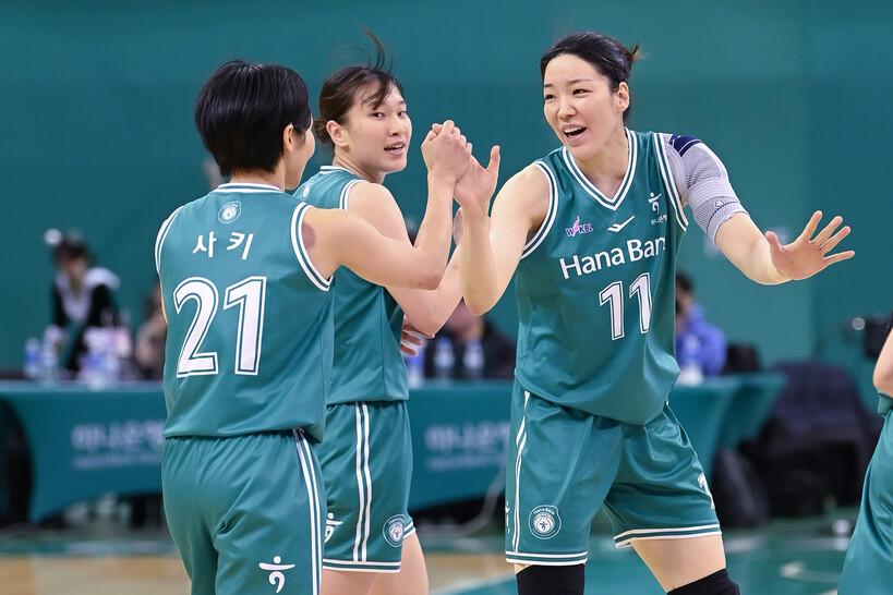 이이지마 사키와 진안이 하나은행의 공격을 이끌었다. 진안은 골밑을 책임졌고, 사키는 내외곽을 오가며 득점을 올렸다.