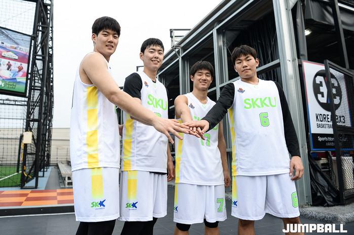 [점프볼=고양/유용우 기자] 15일 스타필드 고양 루프탑에 위치한 스포츠 몬스터 코트에서 열린 '까스명수 THE ORIGINAL 3대3농구대잔치' 조별 예선 경기, 성균관대 농구부가 참가하며 인터뷰 촬영을 하고 있다.