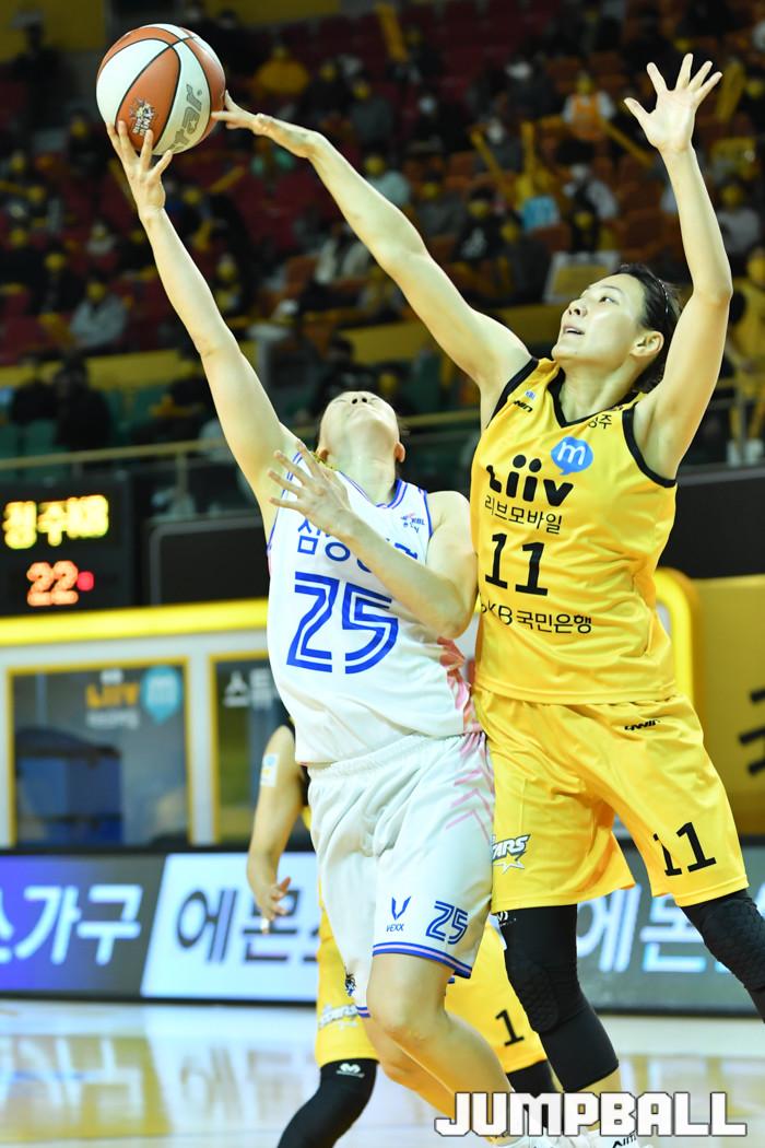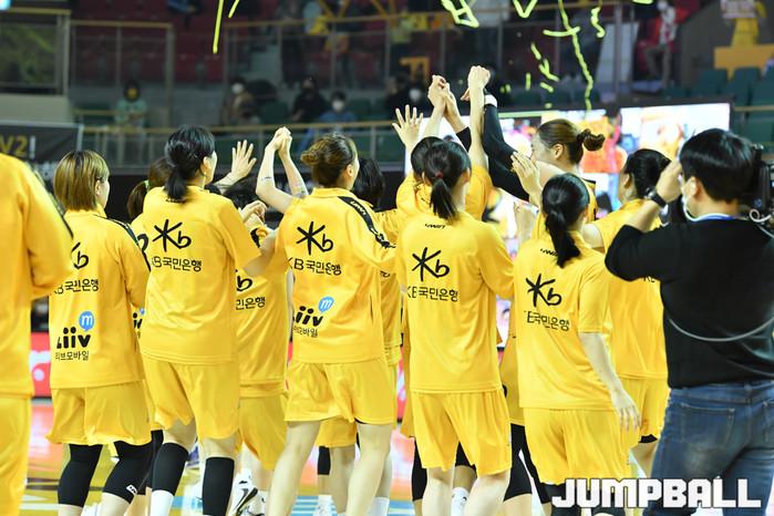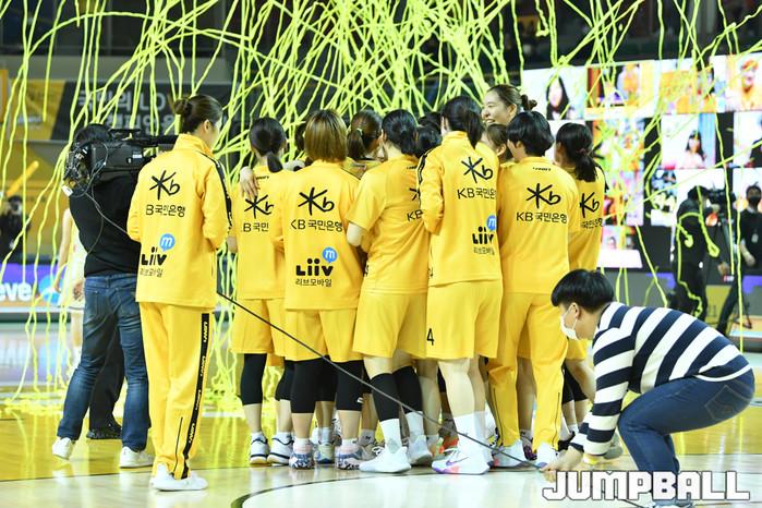 [점프볼=청주/유용우 기자] 11일 청주실내체육관에서 열린 'KB국민은행 Liiv M 2020-2021 여자프로농구' 청주 KB와 용인 삼성생명의 챔피언결정전 3차전, KB가 82-75로 삼성생명에 승리했다.