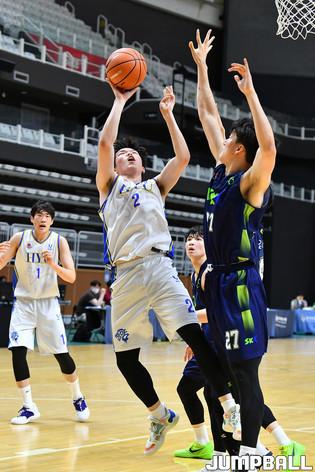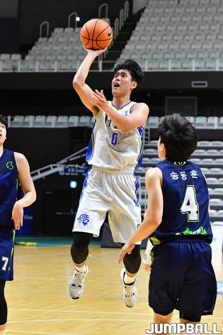 [점프볼=수원/홍기웅 기자] 13일 수원 서수원칠보체육관에서 열린 '2021 KUSF 대학농구 U-리그 3차대회' 성균관대와 한양대의 경기. 성균관대 김근현이 3점슛 득점후 세레모니를 하고 있다.