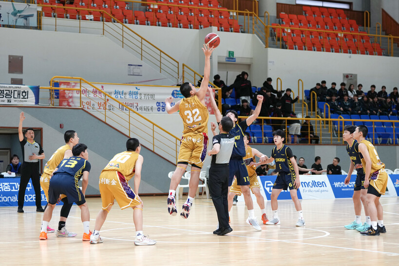 8일 전라남도 영광군 법성고 체육관에서 펼쳐진 제51회 협회장기 전국남녀중고농구 영광대회 남중부 결선 토너먼트 첫날 일정이 마무리됐다.
