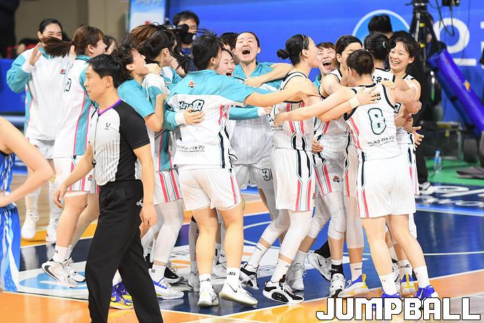 [점프볼=아산/박상혁 기자] 18일 아산이순신체육관에서 열린 'KB국민은행 Liiv M 2020-2021 여자프로농구' 우리은행과 하나원큐의 경기, 하나원큐가 아산에서 우리은행에 66-64로 승리했다.