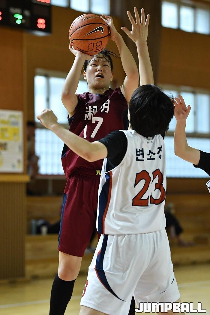 [점프볼=분당/유용우 기자] 12일 분당경영고등학교 실내체육관에서 열린 분당경영고와 숙명여고의 연습경기, 숙명여고 장은혜가 공격을 하고 있다.