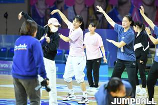 [점프볼=아산/유용우 기자] 06일 아산 이순신체육관에서 열린 2023-2024 WKBL 올스타 페스티벌 ‘W-페스티벌’, WKBL 스타들이 올스타전에 진행할 댄스를 연습하고 있다.