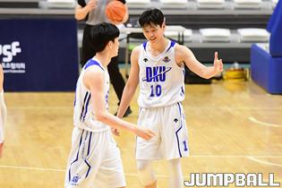 [점프볼=수원/박상혁 기자] 27일 서수원칠보체육관에서 열린 2021 KUSF 대학농구 U리그 중앙대와 한양대의 경기, 중앙대 문가온이 환호하고 있다.