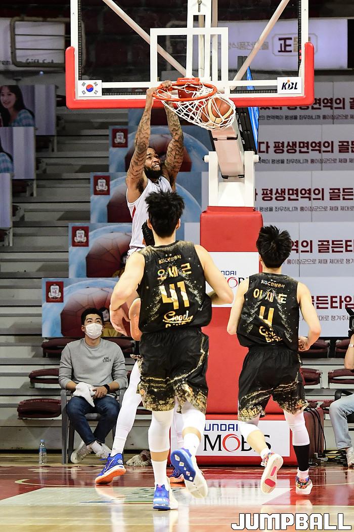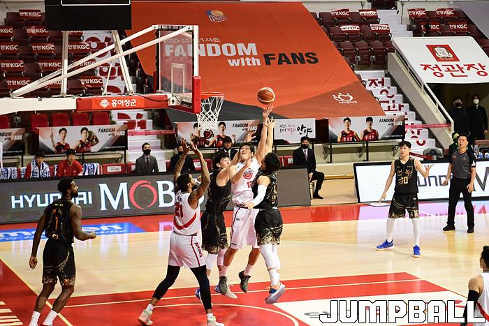[점프볼=안양/박상혁 기자] 11일 안양실내체육관에서 열린 2020-2021 현대모비스 프로농구 안양 KGC인삼공사와 울산 현대모비스의 경기, KGC 인삼공사가 현대모비스에 89-84로 승리했다. KGC인삼공사와 현대모비스 경기 화보