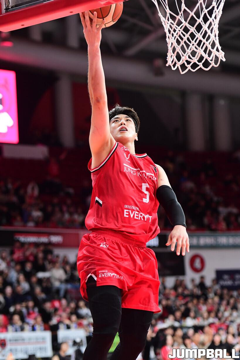 [점프볼=안양/박상혁 기자] 31일 안양체육관에서 열린 2025-2026 LG전자 프로농구 안양 정관장과 창원 LG의 경기, 정관장 변준형이 레이업슛을 시도하고 있다.