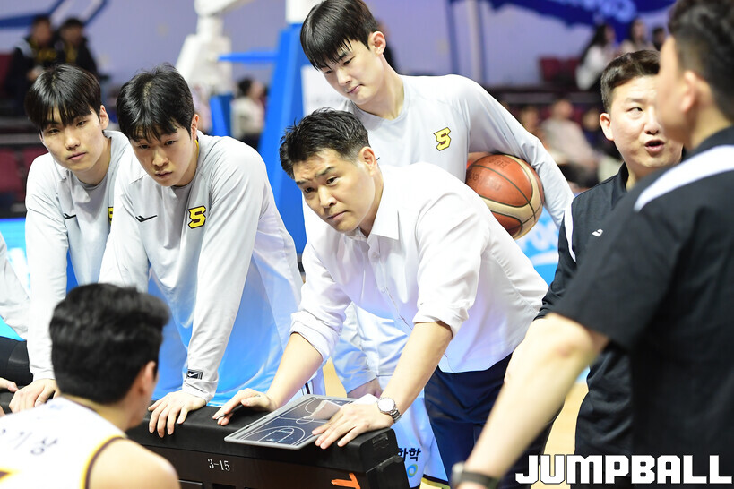 [점프볼=잠실/정다윤 기자] 승리 후 조상현 감독은 대표팀 니콜라스 마줄스 감독에게 데이트 신청(?)을 했다.