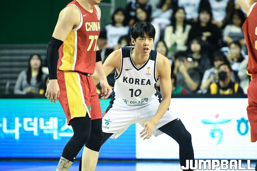 [점프볼=원주/유용우 기자] 1일 원주종합체육관에서 열린 2027 FIBA 농구 월드컵 아시아 예선 1라운드 한국과 중국의 2차전 경기, 남자농구대표팀 김보배가 수비를 펼치고 있다.