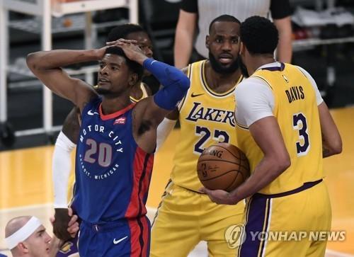 ▶스테이플스 센터에서 열린 LA 레이커스와 디트로이트 피스톤스와의 경기에서 2차 연장까지 가는 접전 끝에 레이커스가 135-129로 승리했다.