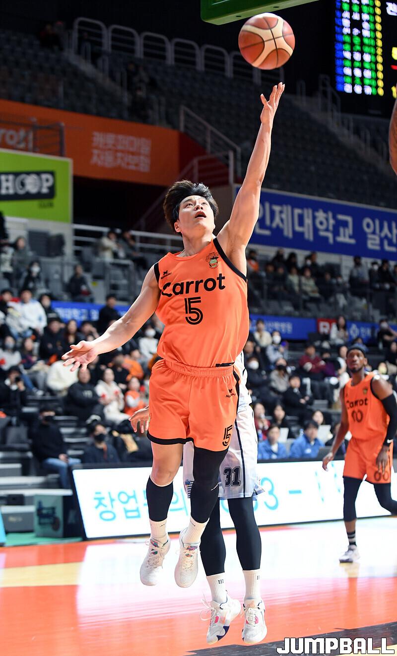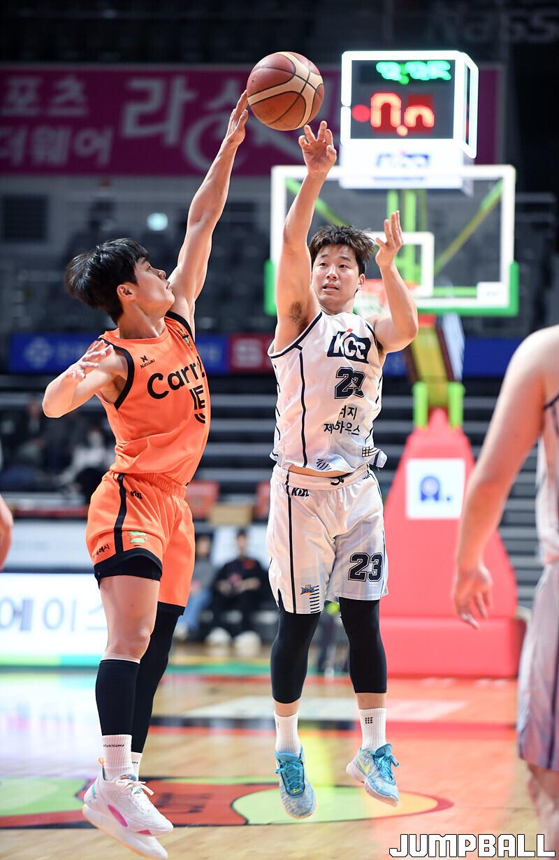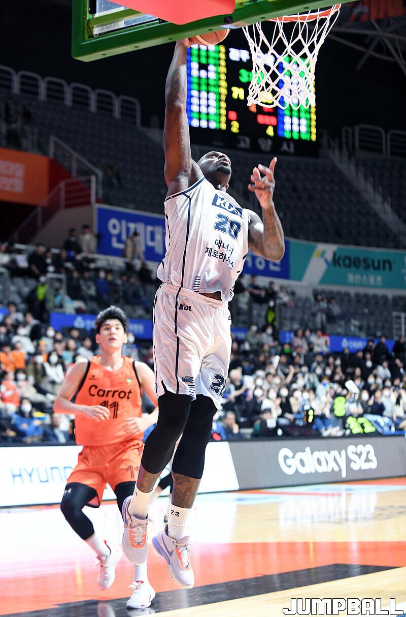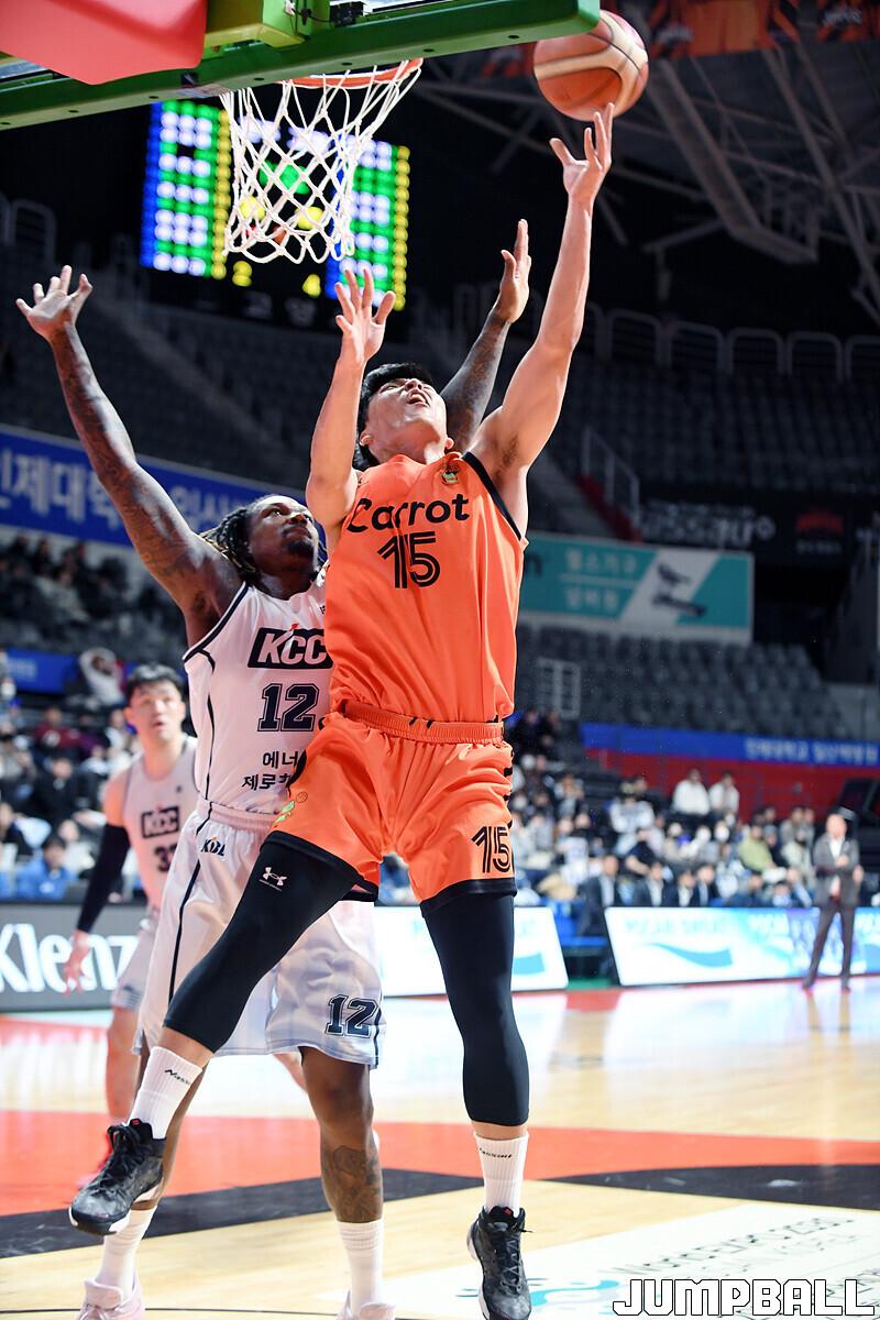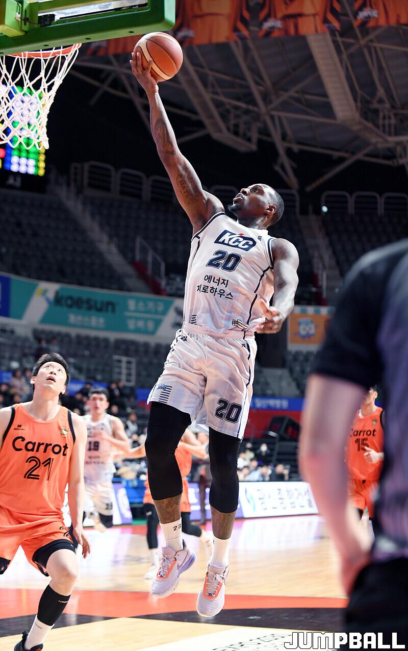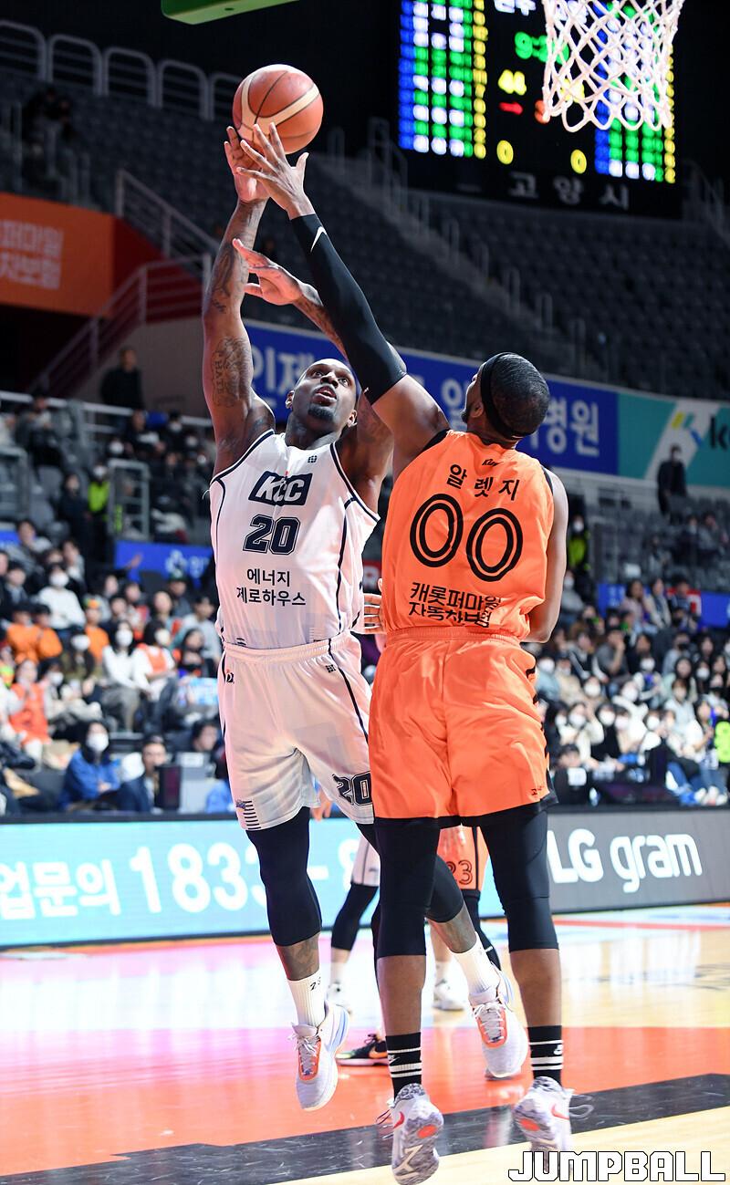 전주 KCC는 15일 고양체육관에서 고양 캐롯과 2022-2023 SKT 에이닷 프로농구 원정경기에서 76-67로 이겼다.