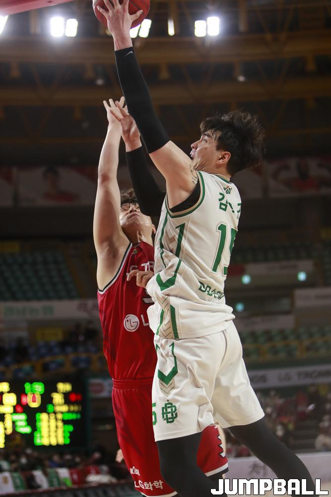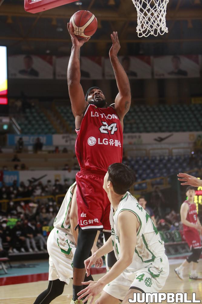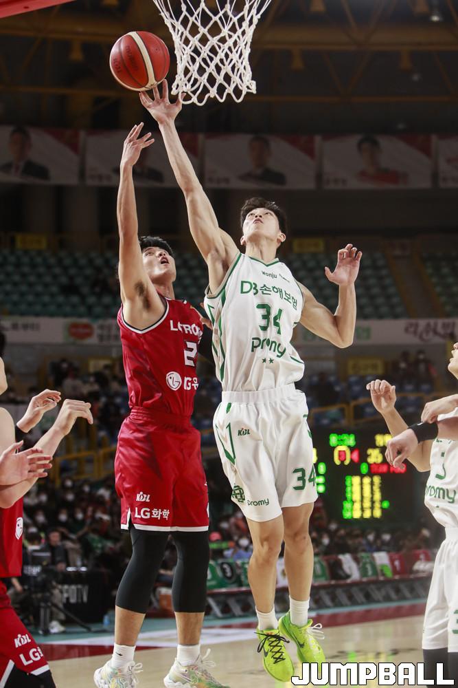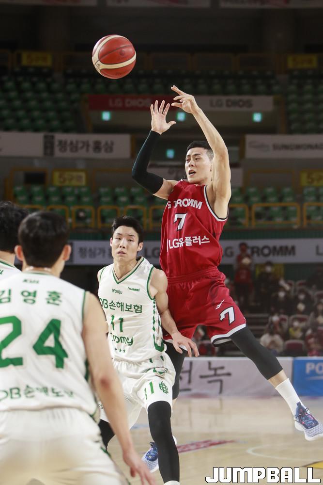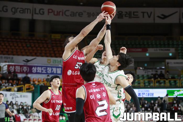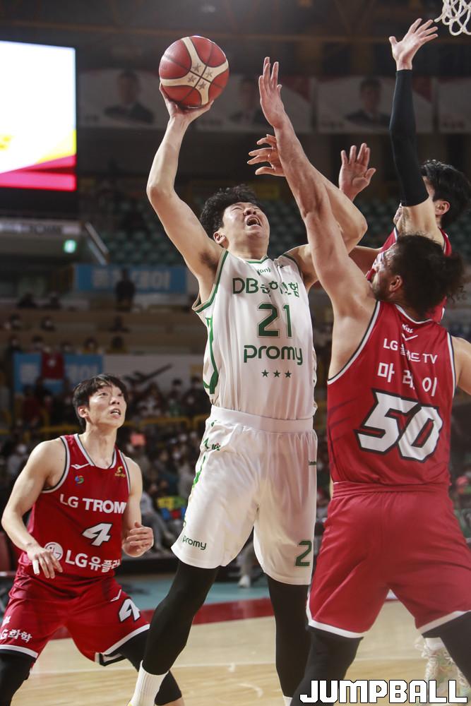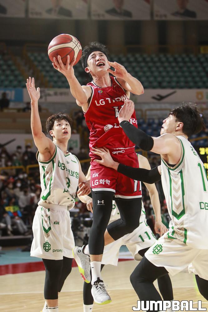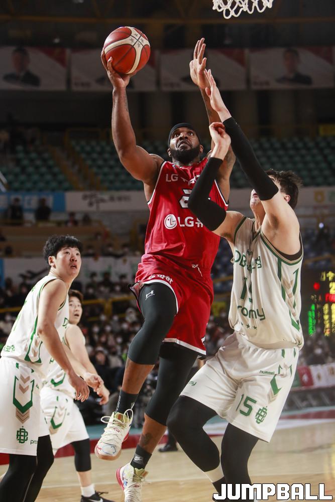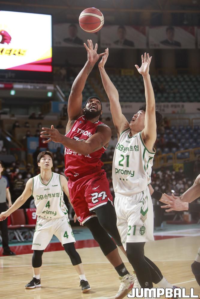 [점프볼=정을호 기자] 14 창원실내체육관에서 열린 2021-2022 KGC인삼공사 정관장 프로농구 창원 LG 원주 DB 경기, 창원 LG 원주 DB 82-77 승리하였다.  창원 LG 원주 DB 경기화보
