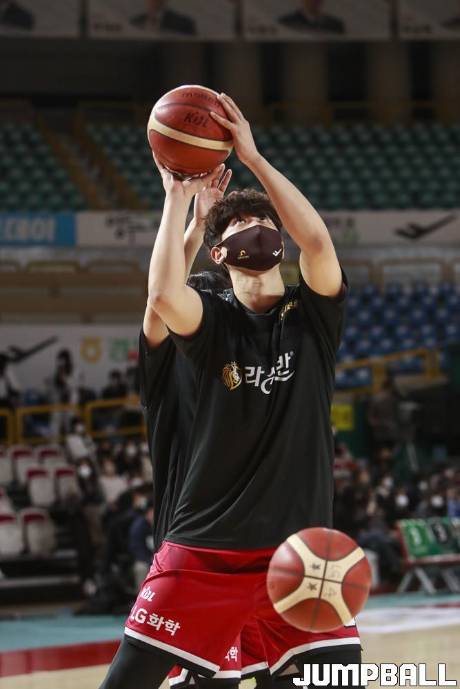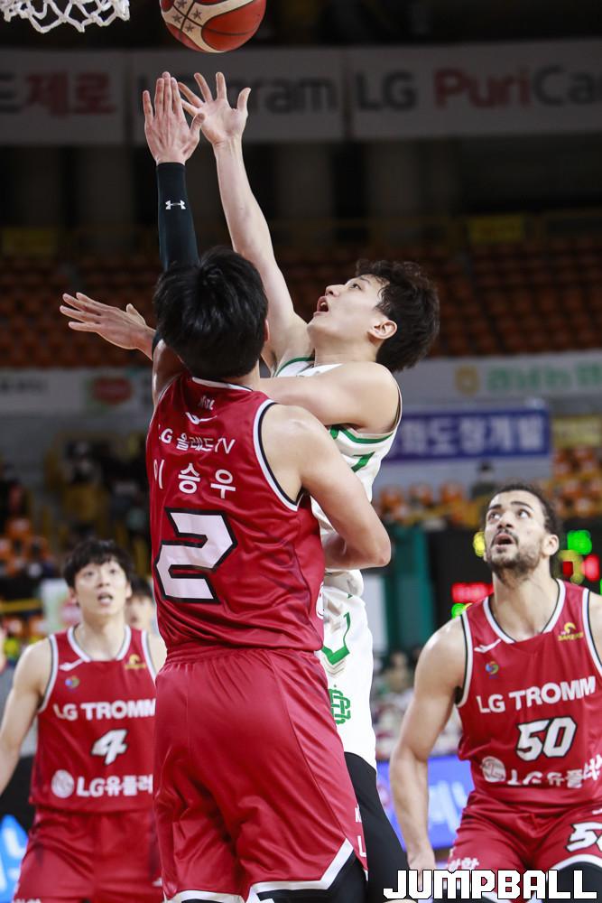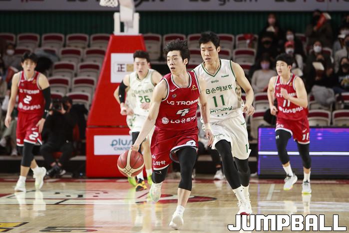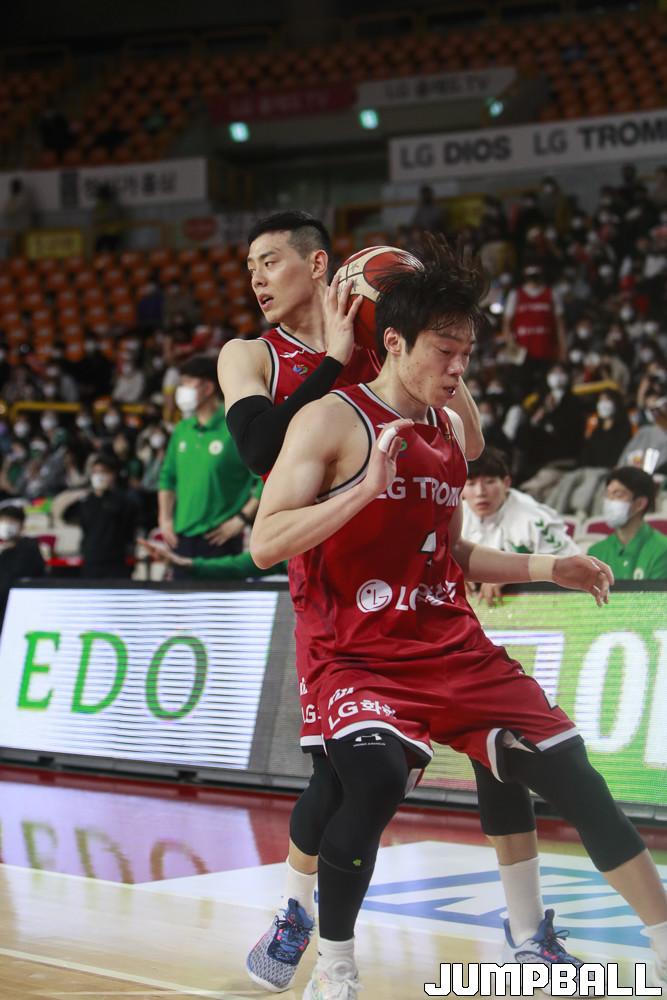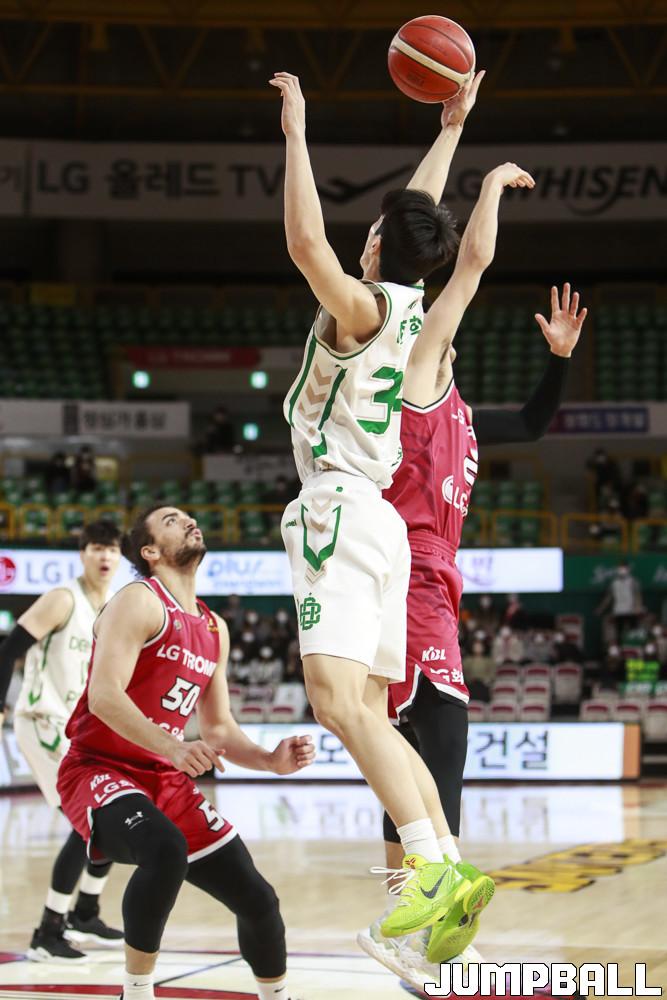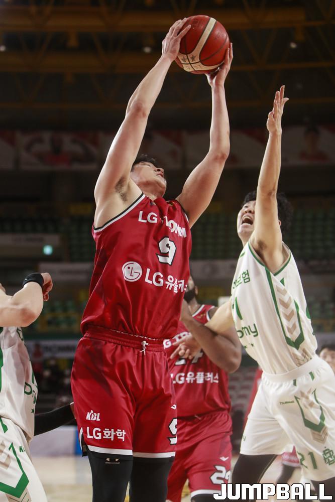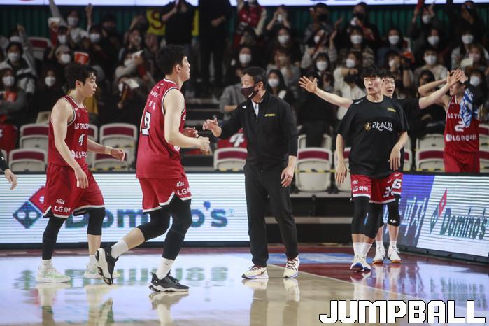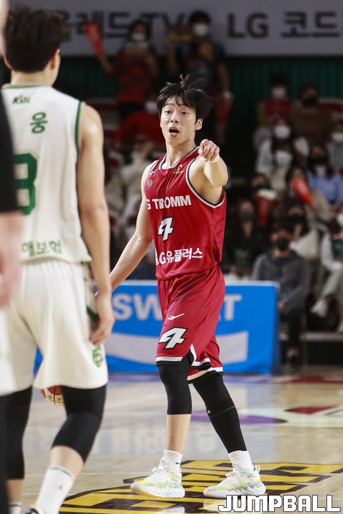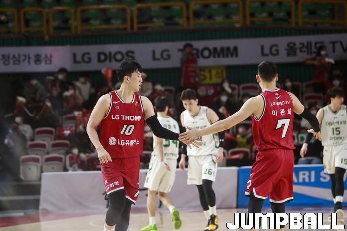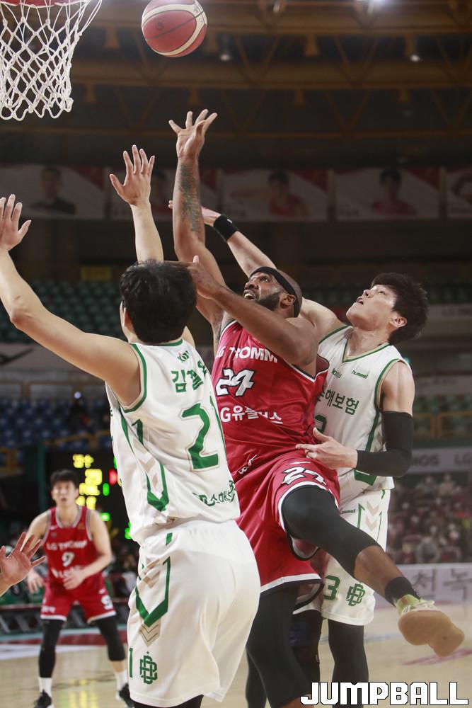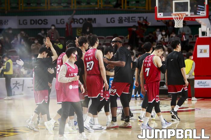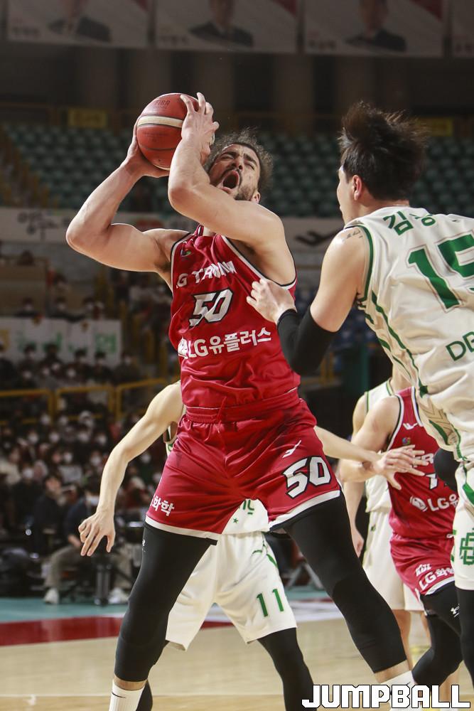[점프볼=정을호 기자] 14 창원실내체육관에서 열린 2021-2022 KGC인삼공사 정관장 프로농구 창원 LG 원주 DB 경기, 창원 LG 원주 DB 82-77 승리하였다.  창원 LG 원주 DB 경기화보