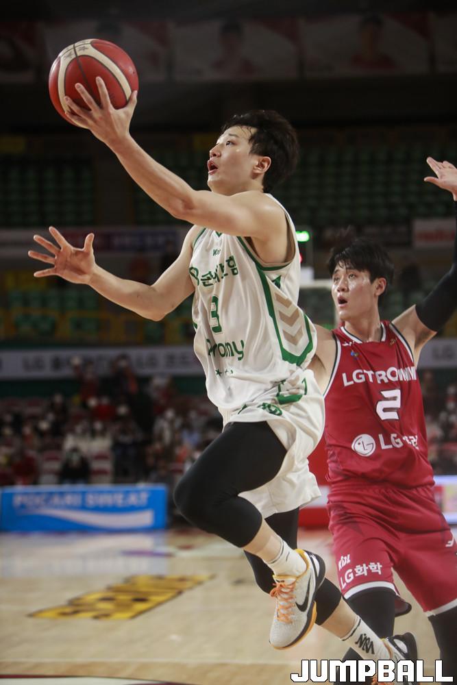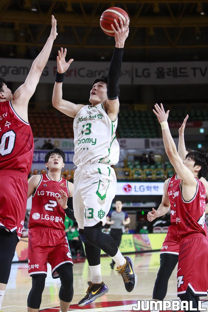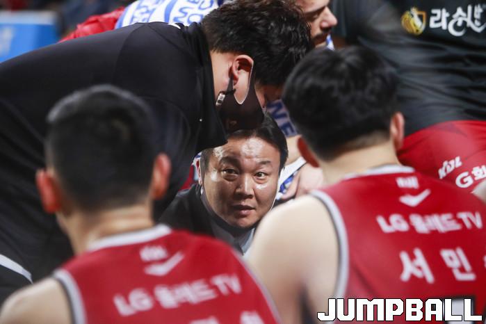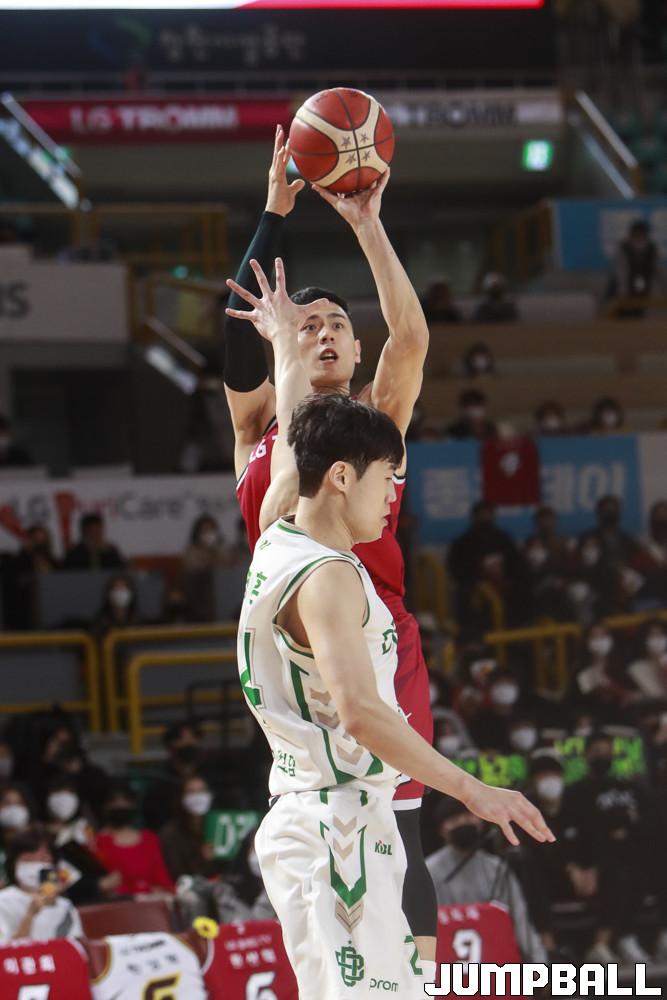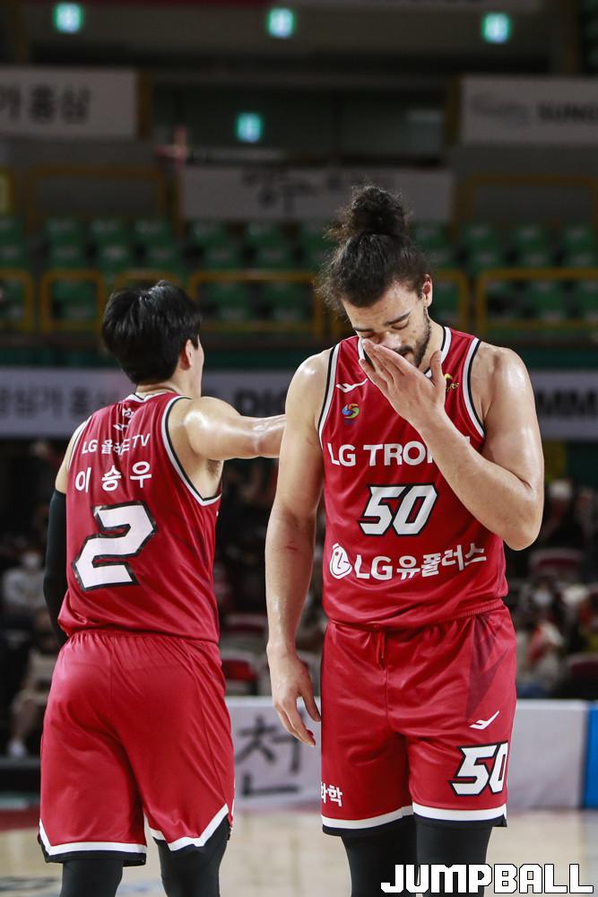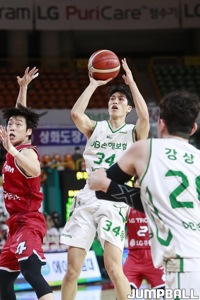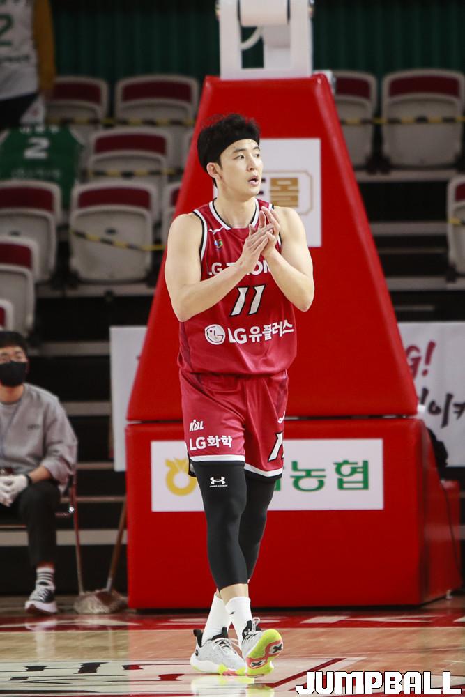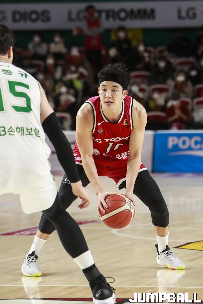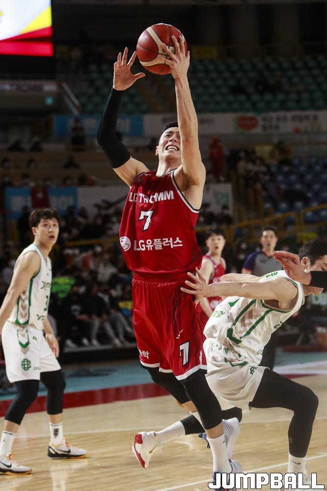 [점프볼=정을호 기자] 14 창원실내체육관에서 열린 2021-2022 KGC인삼공사 정관장 프로농구 창원 LG 원주 DB 경기, 창원 LG 원주 DB 82-77 승리하였다.  창원 LG 원주 DB 경기화보