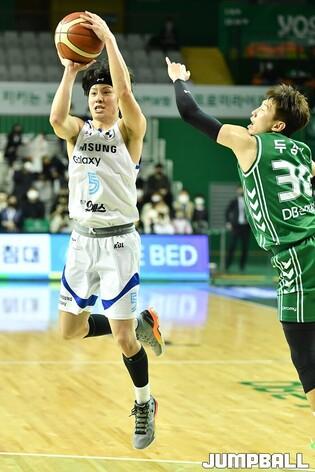 27일 원주종합체육관에서 열린 2022-2023 SKT 에이닷 프로농구 원주 DB와 서울 삼성의 경기, DB 두경민이 슛을 시도하고 있다. [점프볼=원주/유용우 기자]