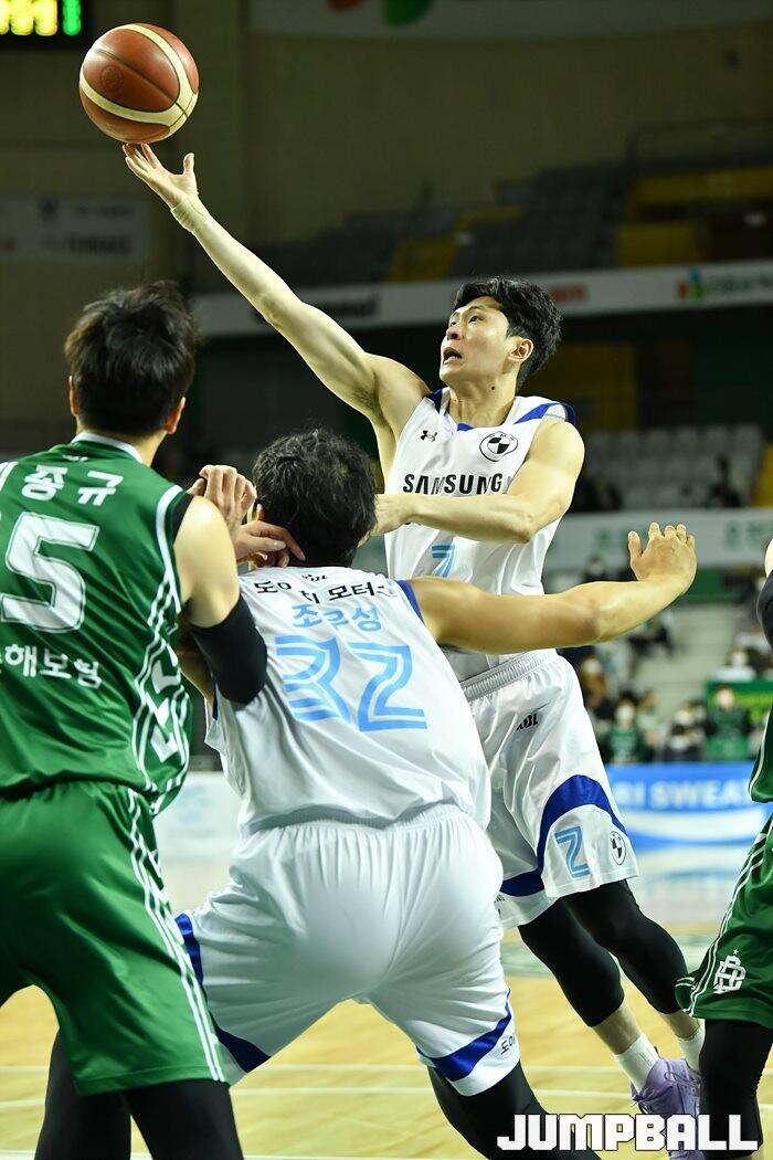 27일 원주종합체육관에서 열린 2022-2023 SKT 에이닷 프로농구 원주 DB와 서울 삼성의 경기, 삼성 이호현이 공격을 하고 있다. [점프볼=원주/유용우 기자]