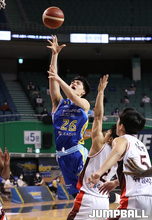 [점프볼=잠실/백승철 기자] 6일 잠실실내체육관에서 열린 2020-2021 현대모비스 프로농구 서울 삼성과 부산 KT의 경기, 삼성 차민석이 슛을 시도하고 있다.