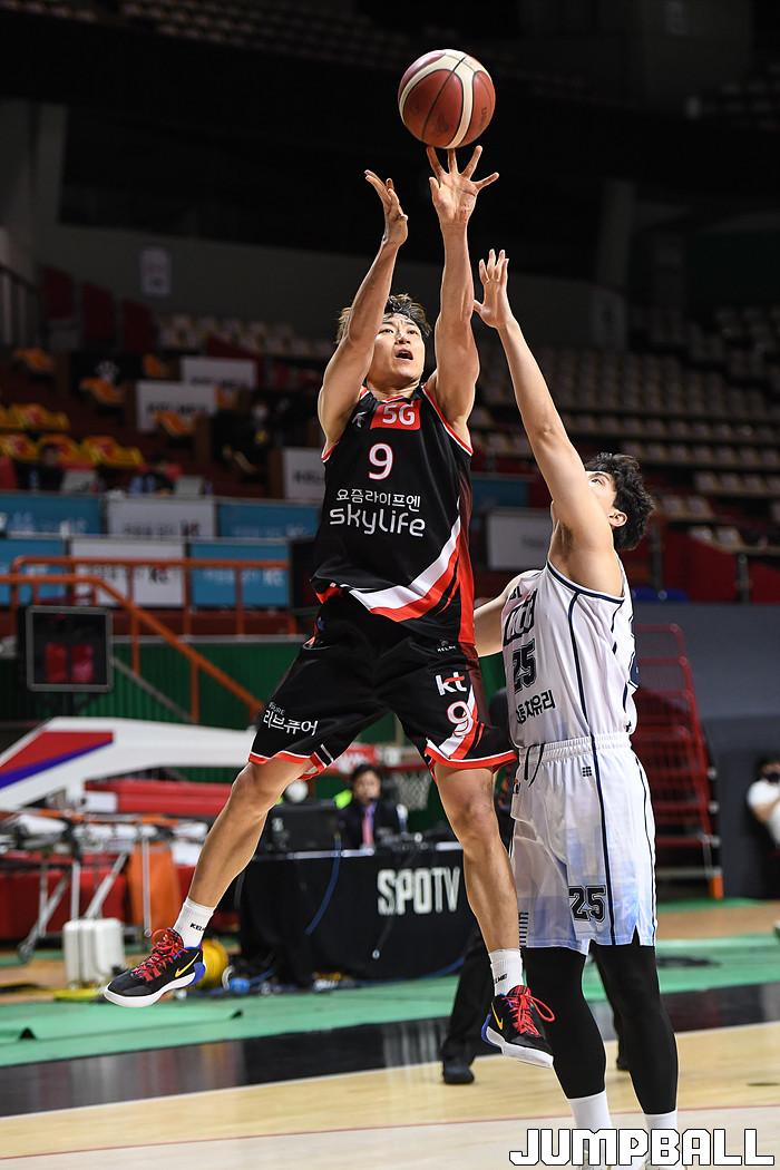 [점프볼=부산/박상혁 기자] 16일 부산사직체육관에서 열린 2020-2021 현대모비스 프로농구 부산 KT와 전주 KCC의 경기, KT 김영환이 점프슛을 시도하고 있다.