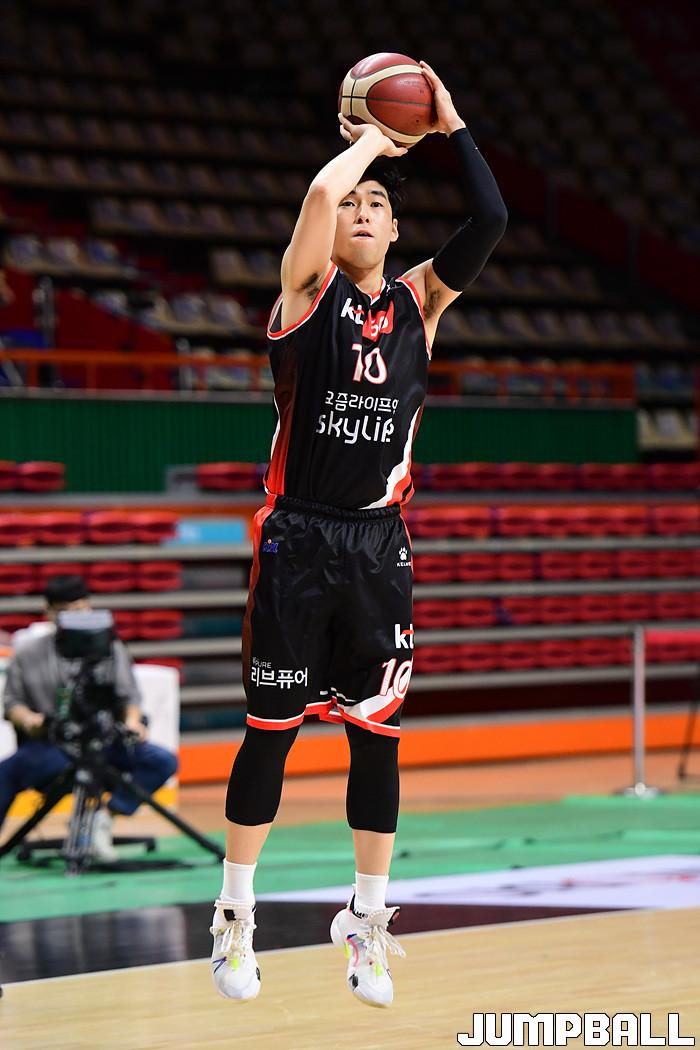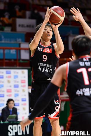 [점프볼=부산/박상혁 기자] 15일 부산사직체육관에서 열린 2020-2021 현대모비스 프로농구 부산 KT와 인천 전자랜드의 경기, KT 김종범이 3점슛을 시도하고 있다.