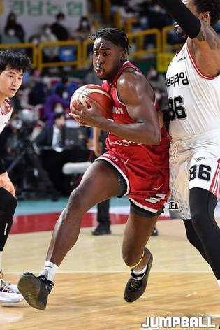 23일 창원실내체육관에서 열린 2021-2022 KGC인삼공사 정관장 프로농구 창원 LG와 안양 KGC인삼공사의 경기, KGC인삼공사 스펠맨이 돌파를 하고 있다.