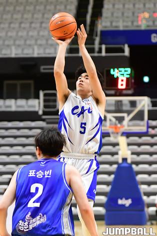 [점프볼=수원/박상혁 기자] 27일 서수원칠보체육관에서 열린 2021 KUSF 대학농구 U리그 중앙대와 한양대의 경기, 한양대 김민진이 3점슛을 시도하고 있다.