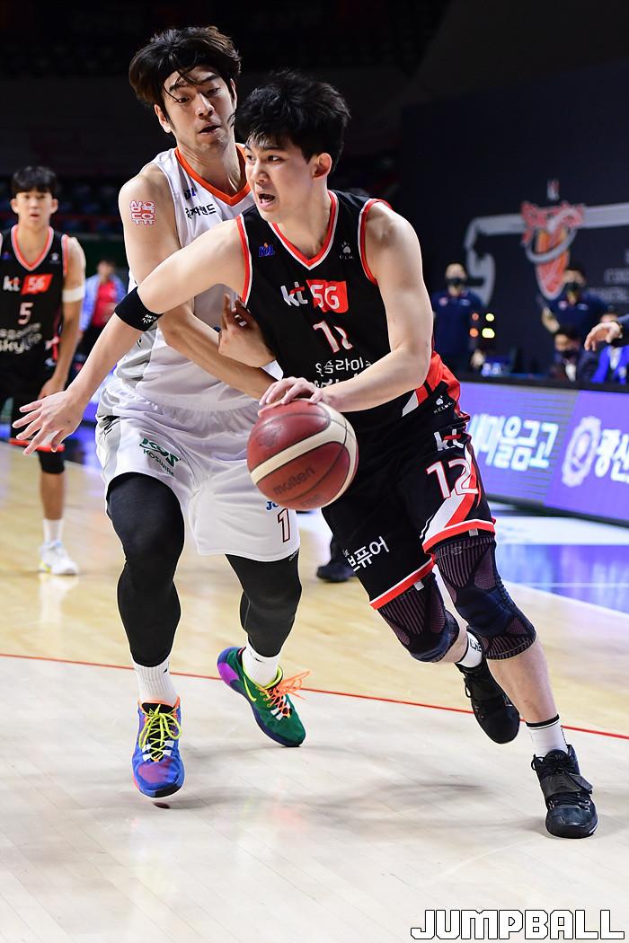 [점프볼=부산/박상혁 기자] 15일 부산사직체육관에서 열린 2020-2021 현대모비스 프로농구 부산 KT와 인천 전자랜드의 경기, KT 박준영이 돌파를 시도하고 있다.
