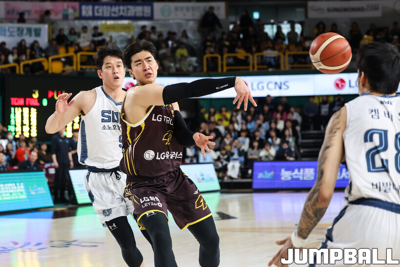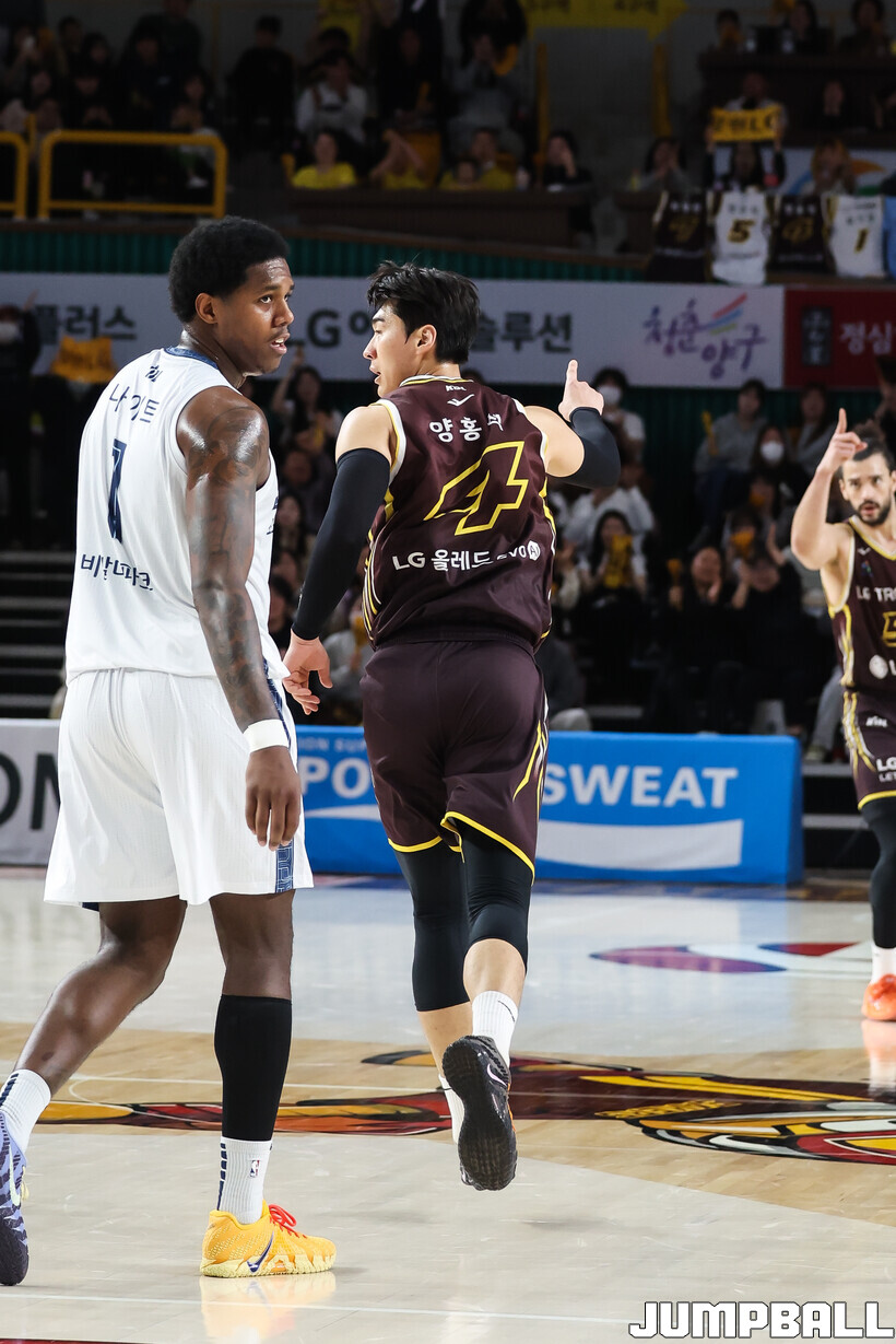 LG는 양홍석의 패스를 받은 정인덕의 점퍼로 첫 득점을 올렸다. 양홍석은 뒤이어 직접 점퍼로 득점을 올린 뒤 스크린 어시스트로 유기상의 3점슛까지 도왔다. 양홍석은 팀의 첫 7점에 직간접적으로 관여했다.