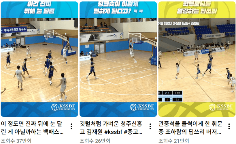 최남식 중고농구연맹 사무국장은 “조회수 비율이 구독자 30%, 비구독자 70%의 이상적인 형태”라고 했다. 이제는 특별히 홍보하지 않아도 입소문을 타고 영상과 쇼츠가 전파되는 단계라는 것이다. 비구독자 비율이 높은 이유다. 30%의 구독자는 충성 고객이다.