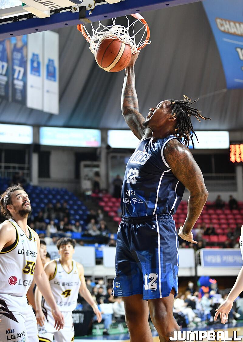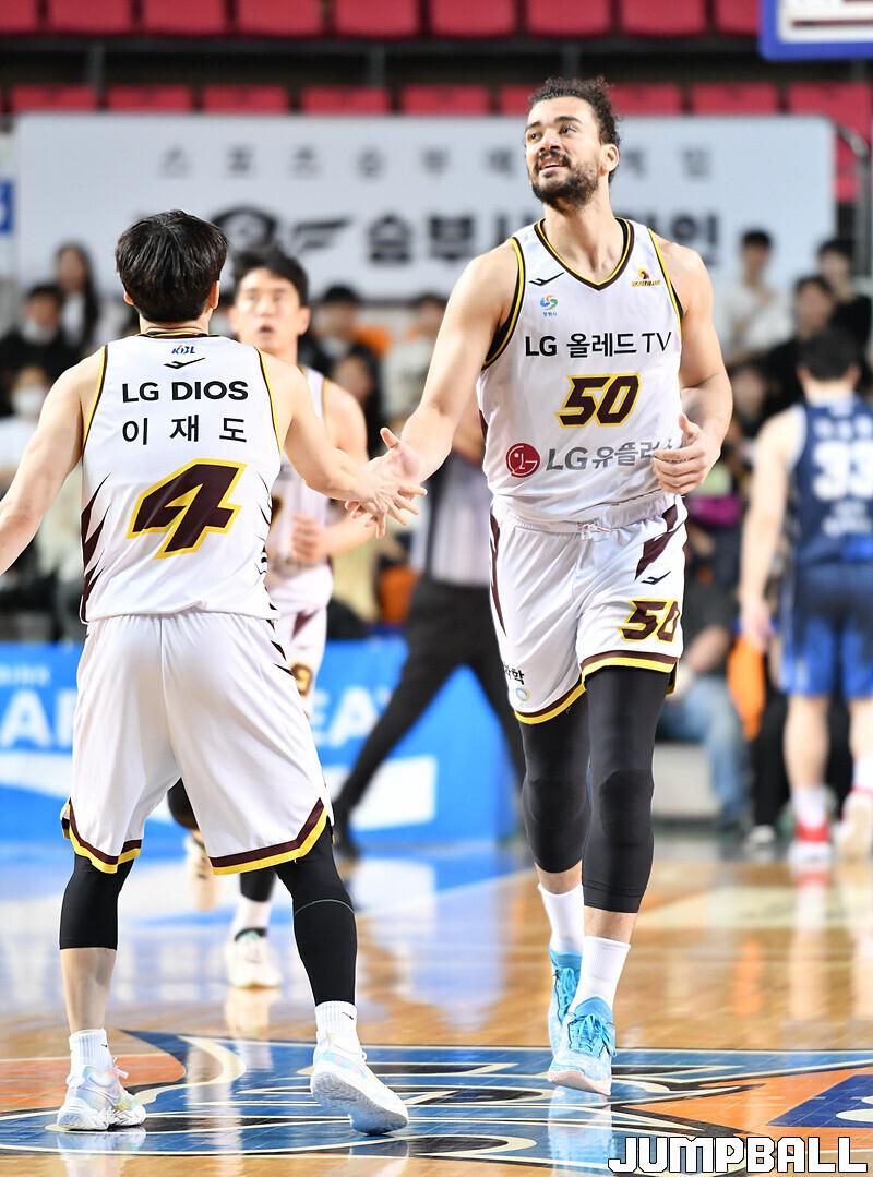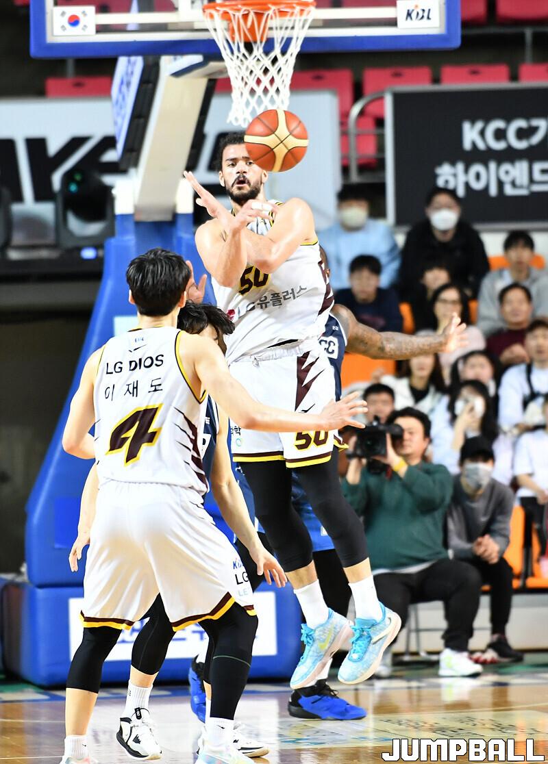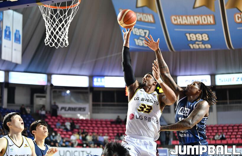 창원 LG는 9일 전주체육관에서 열린 2022-2023 SKT 에이닷 프로농구 전주 KCC와의 원정 경기에서 87-57로 승리했다. 아셈 마레이(20점 13리바운드 2어시스트)가 더블더블을 기록하며 맹활약했고, 이재도(13점 4리바운드 5어시스트)와 김준일(13점 4리바운드 5어시스트)도 팀 승리에 힘을 보탰다.