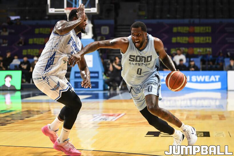 [점프볼=고양/유용우 기자] 13일 고양 소노 아레나에서 열린 2025-2026 LG전자 프로농구 고양 소노와 대구 한국가스공사의 경기, 소노 제일린 존슨이 돌파를 시도하고 있다.