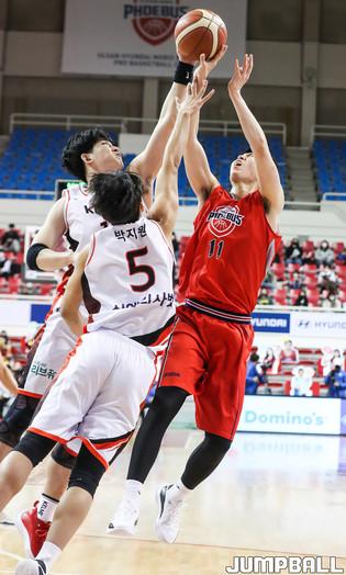 [점프볼=윤민호 기자] 24일 울산 동천체육관에서 열린 2020-2021 현대모비스 프로농구 울산현대모비스와 부산 KT의 경기