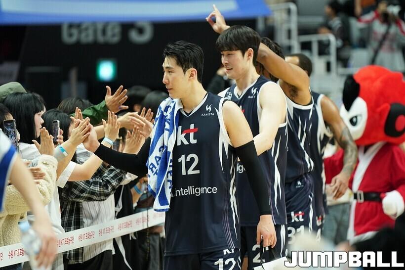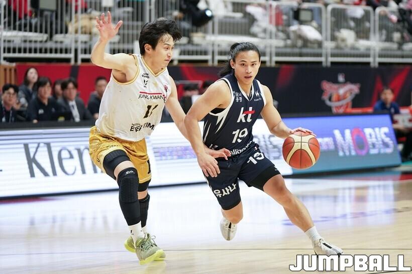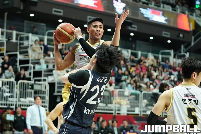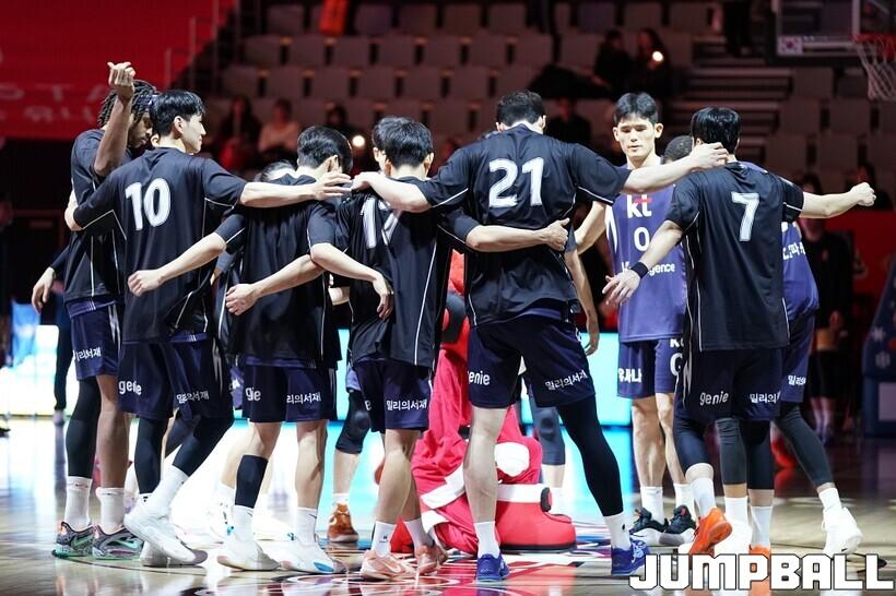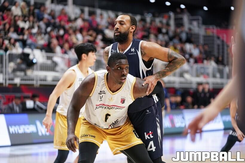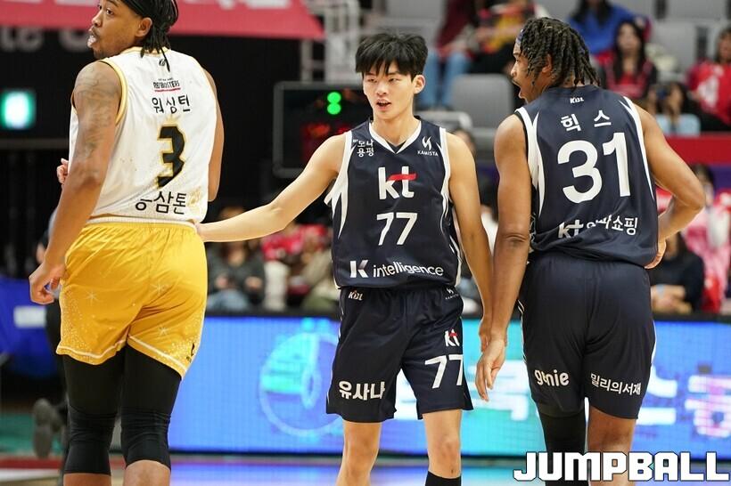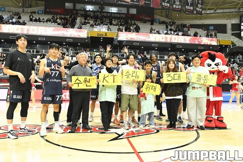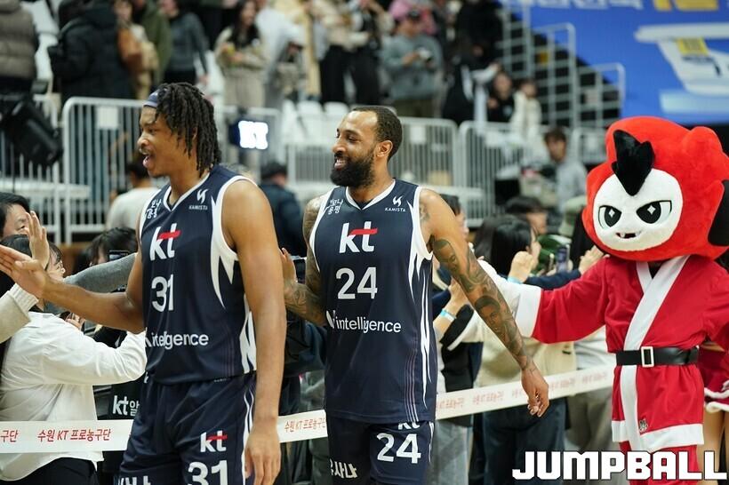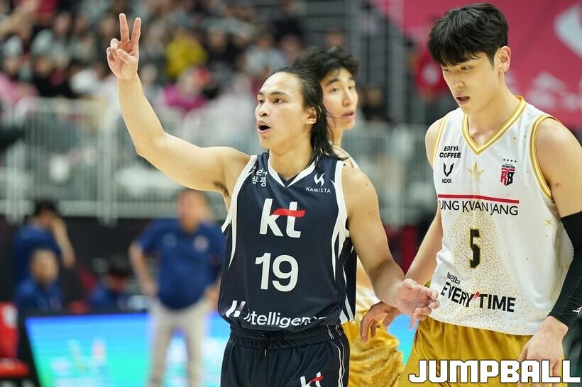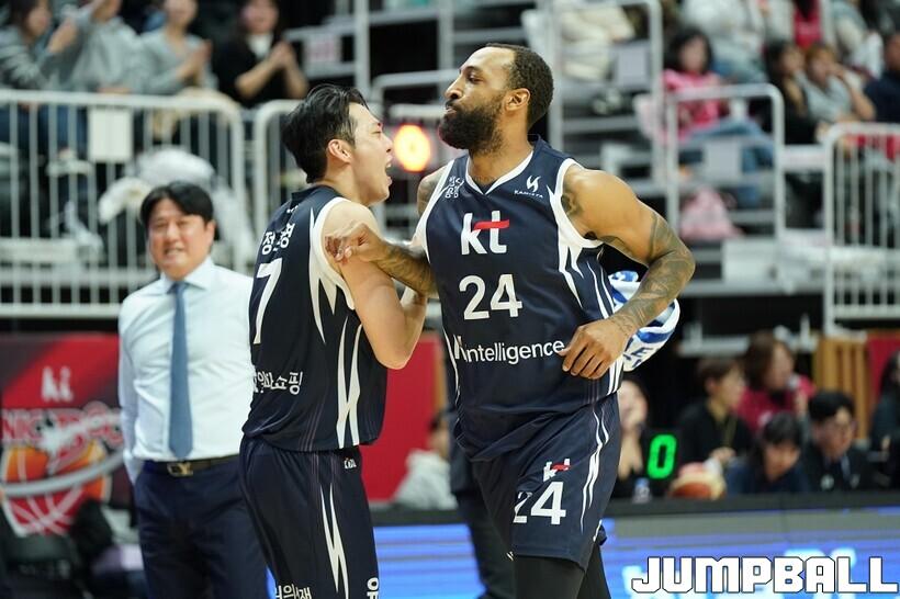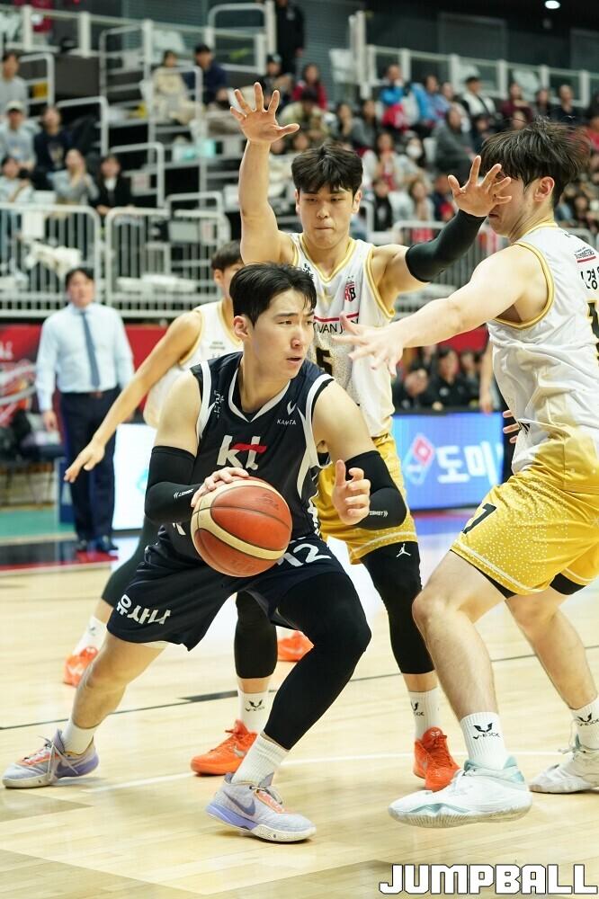 [점프볼=수원/유용우 기자] 12일 수원 KT 소닉붐 아레나에서 열린 2025-2026 LG전자 프로농구 수원 KT와 안양 정관장의 경기, KT가 89-69로 정관장에 승리했다. 데릭 윌리엄스가 16점, 문정현과 아이재아 힉스가 각각 15점을 넣으며 팀 승리에 기여했다.