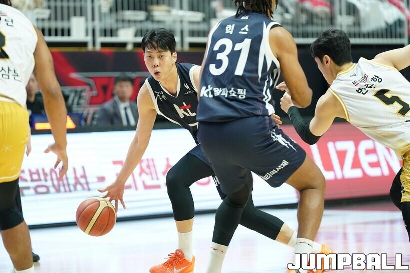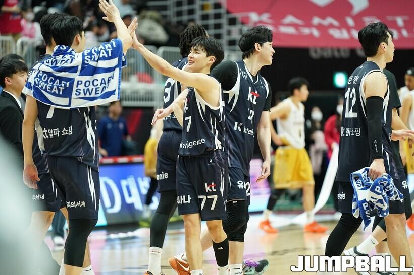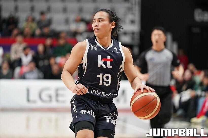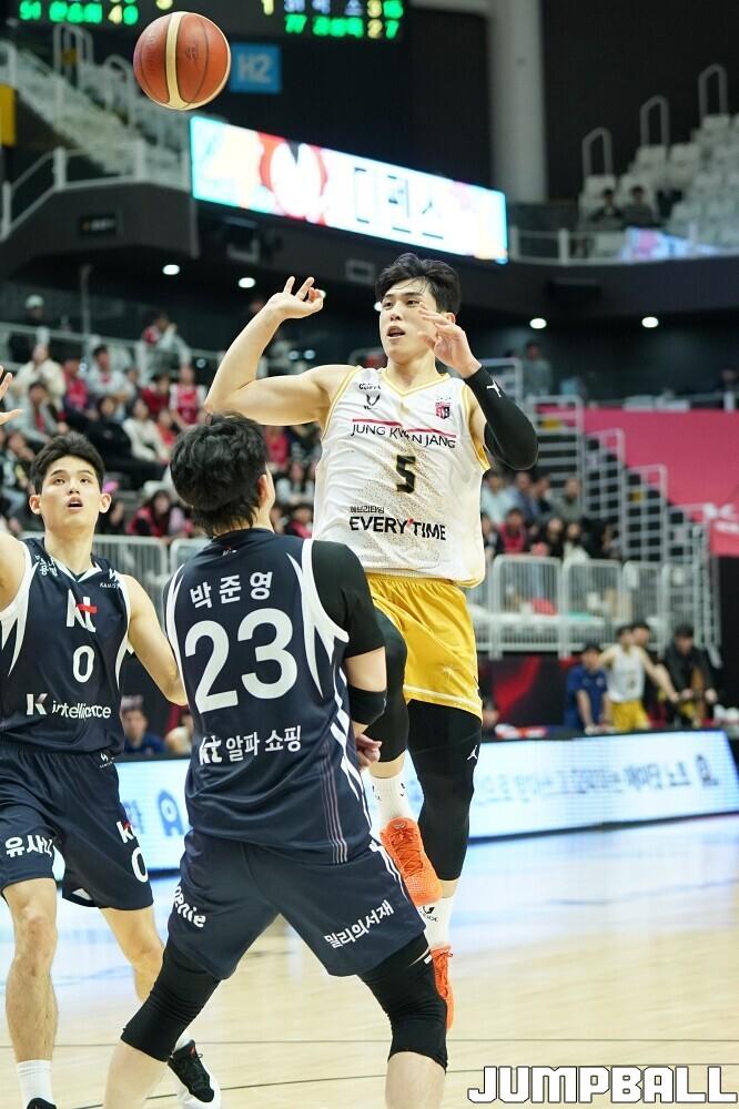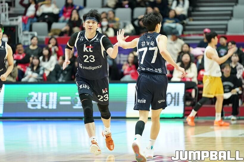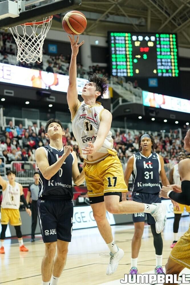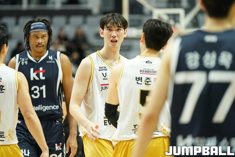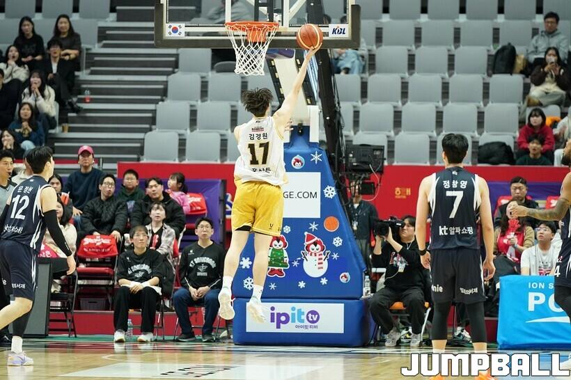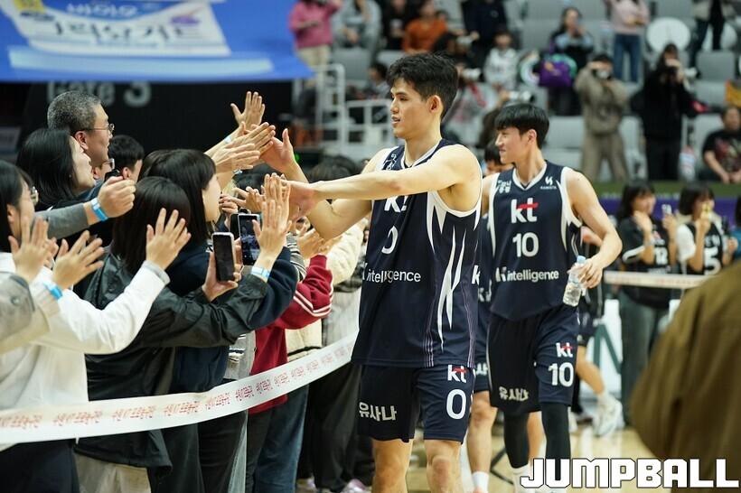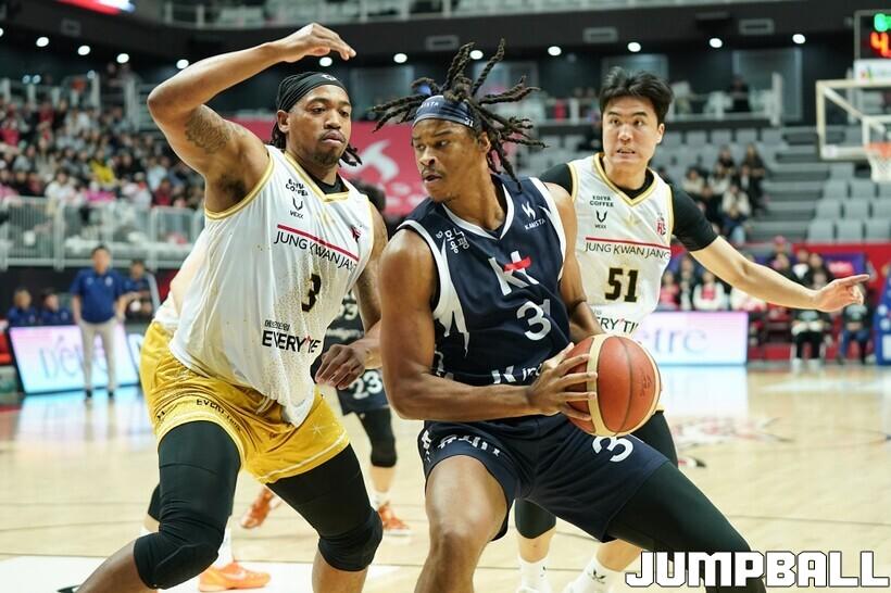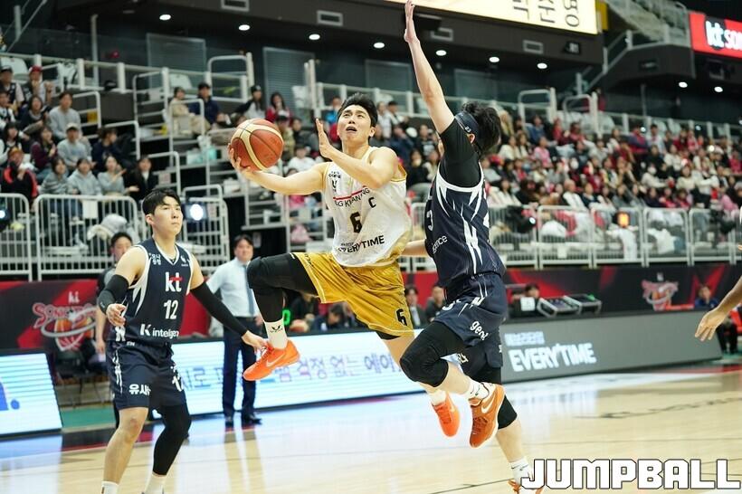 [점프볼=수원/유용우 기자] 12일 수원 KT 소닉붐 아레나에서 열린 2025-2026 LG전자 프로농구 수원 KT와 안양 정관장의 경기, KT가 89-69로 정관장에 승리했다. 데릭 윌리엄스가 16점, 문정현과 아이재아 힉스가 각각 15점을 넣으며 팀 승리에 기여했다.