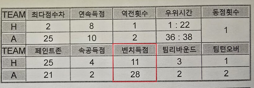 이민지 혼자 기록한 득점에도 미치지 못하는 벤치 득점이었다. 이민지는 4쿼터 종료 1분여 전 3점슛이 실패하기 전까지 3점슛 4개 포함 5개의 야투를 모두 넣는 등 16점 5리바운드 2스틸로 활약, 신한은행에 찬물을 끼얹었다. 최종 벤치 득점은 11-28. 주전, 벤치 전력 가릴 것 없이 신한은행의 완패였다.