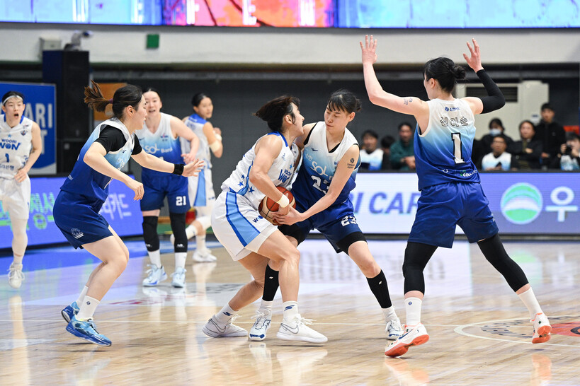 반면, 우리은행은 트리플더블급 활약을 펼친 김단비(12점 14리바운드 8어시스트 2블록슛)를 축으로 4명이 두 자리 득점을 올렸고, 심성영(7점 3어시스트 2스틸)은 딥쓰리로 신한은행에 찬물을 끼얹었다.