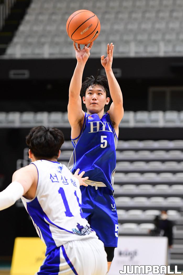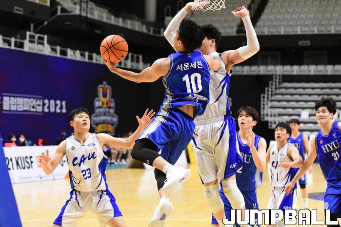 [점프볼=수원/박상혁 기자] 27일 서수원칠보체육관에서 열린 2021 KUSF 대학농구 U리그 중앙대와 한양대의 경기, 중앙대가 한양대에 91-83으로 승리했다. 중앙대와 한양대 경기 화보