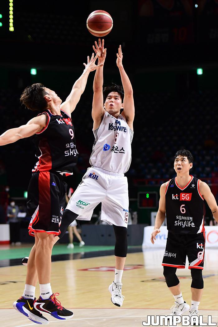 [점프볼=부산/박상혁 기자] 27일 부산사직체육관에서 열린 2020-2021 현대모비스 프로농구 부산 KT와 인천 전자랜드의 경기, 전자랜드 전현우가 슛을 시도하고 있다.