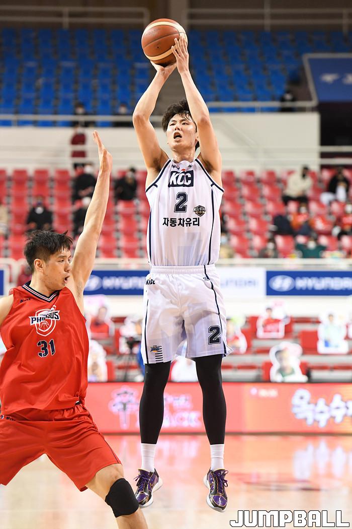 [점프볼=울산/박상혁 기자] 3일 울산동천체육관에서 열린 2020-2021 현대모비스 프로농구 울산 현대모비스와 전주 KCC의 경기, KCC 송교창이 3점슛을 시도하고 있다.