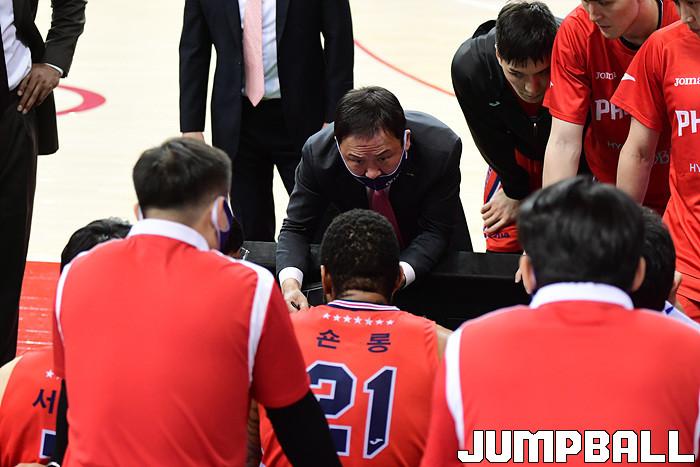 [점프볼=울산/박상혁 기자] 17일 울산동천체육관에서 열린 2020-2021 현대모비스 프로농구 울산 현대모비스와 인천 전자랜드의 경기, 현대모비스 유재학 감독이 선수들에게 작전을 지시하고 있다.