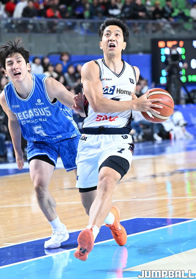 4쿼터 막판 허훈이 투혼을 발휘했다. 허훈은 2초를 남기고 돌파로 79-79, 동점을 만들었다. 승부는 연장으로 들어갔다.