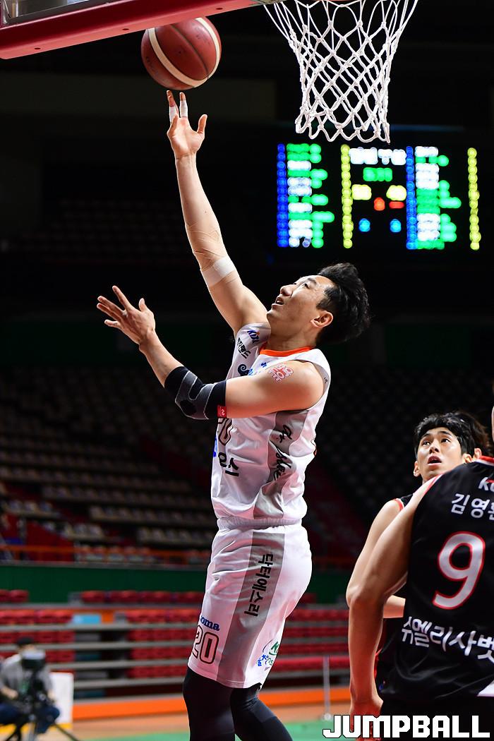[점프볼=부산/박상혁 기자] 15일 부산사직체육관에서 열린 2020-2021 현대모비스 프로농구 부산 KT와 인천 전자랜드의 경기, 전자랜드 정영삼이 레이업슛을 시도하고 있다.